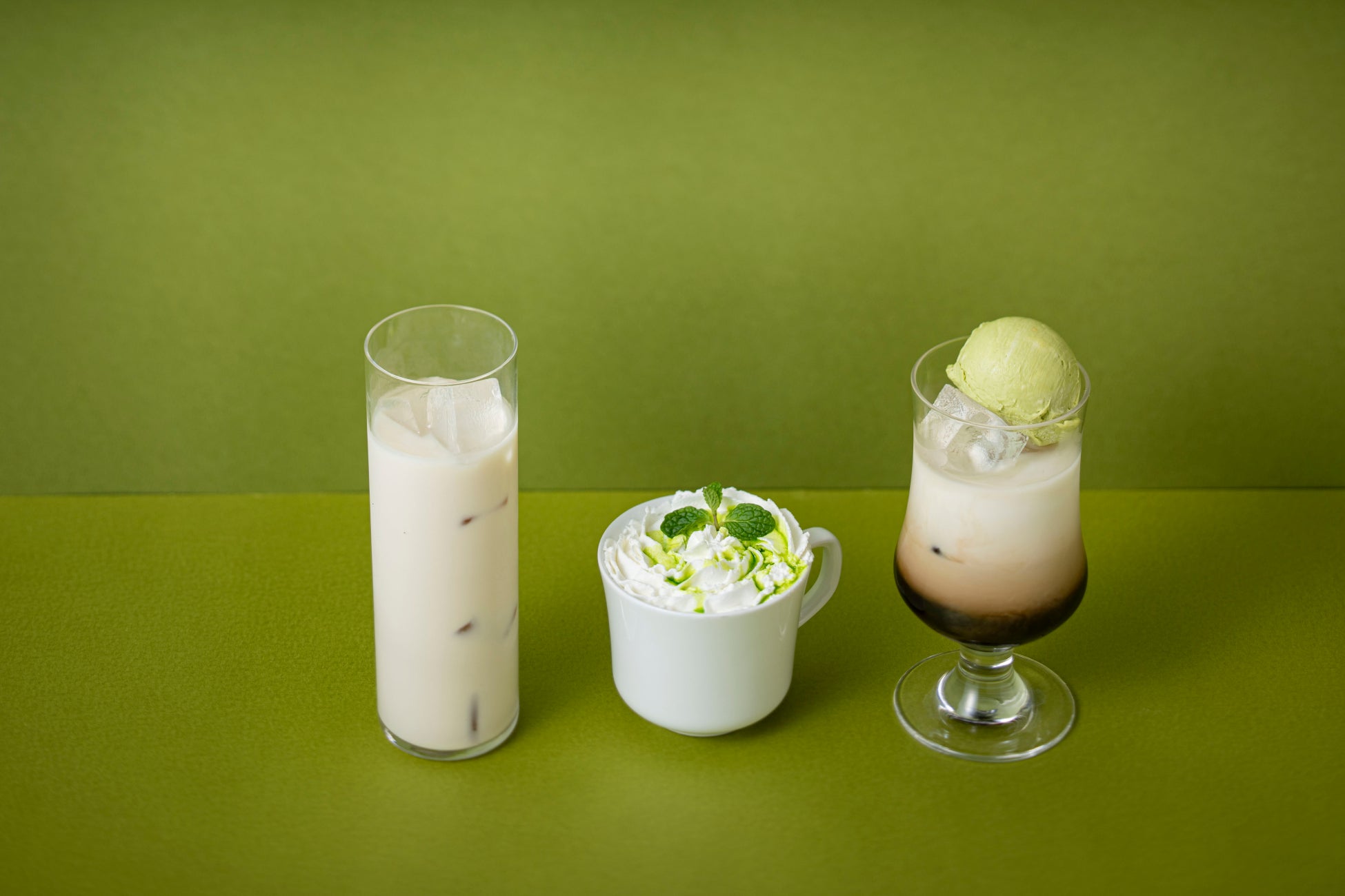 ・グリーンティーラテ(ホットのみ / 写真中央)