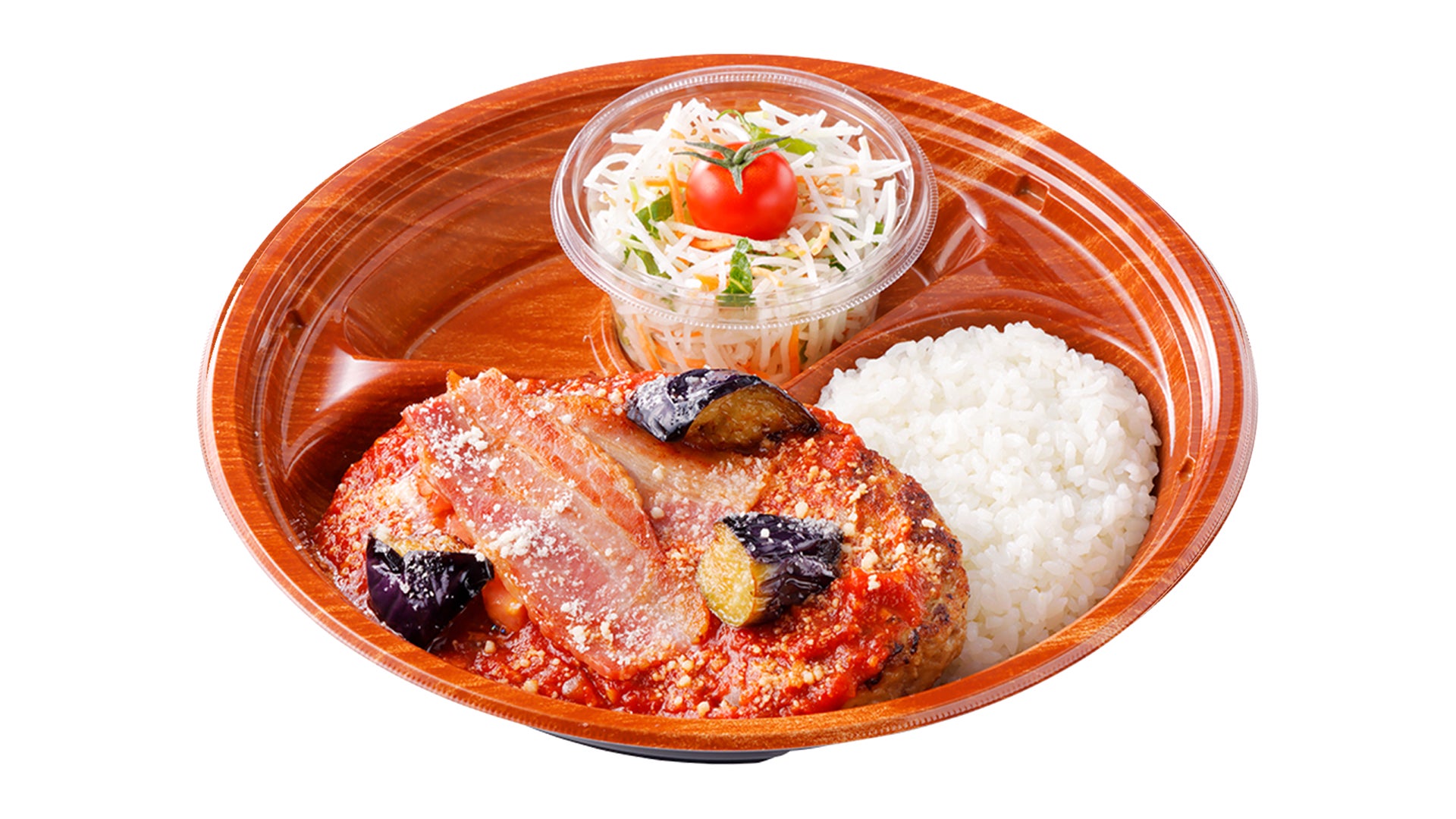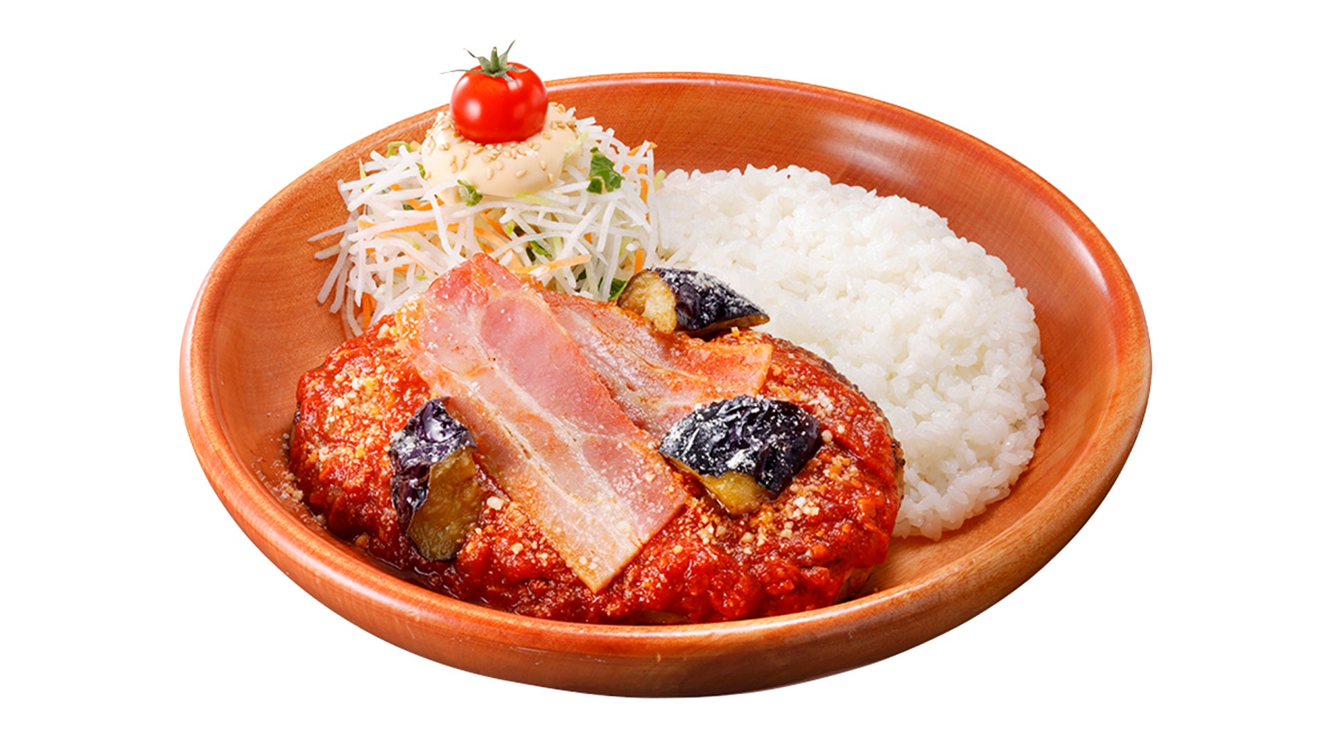 今年は、シュリンプフリットが乗った「角切りトマトとシュリンプのオムバーグディッシュ」、ベーコン、茄子、パルミジャーノの旨味の相乗効果が愉しめる「厚切りベーコンと茄子のアラビアータバーグディッシュ」が初登場。