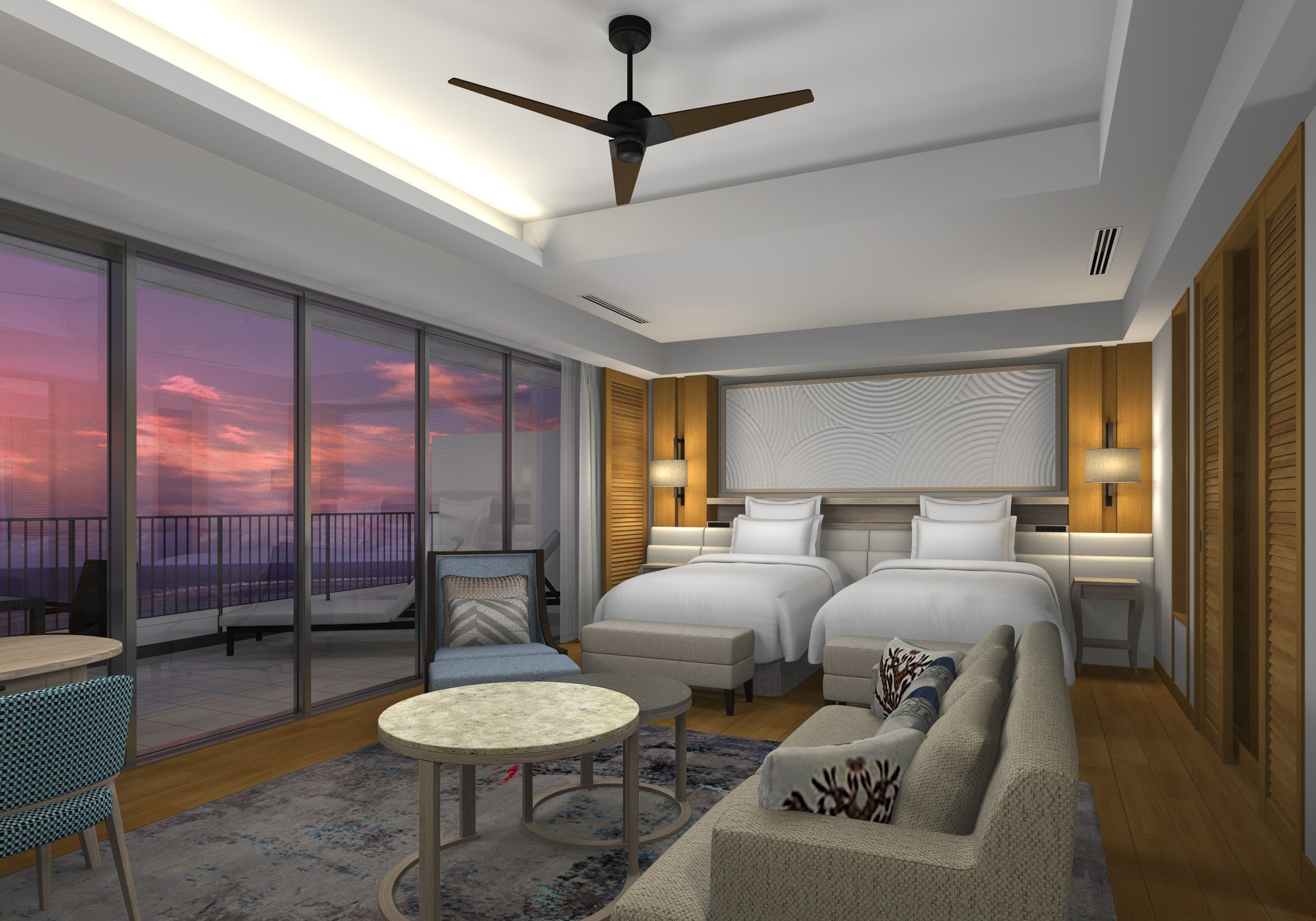 オーシャンウイングにはプレミアムフロアが誕生。海の輝きや沖縄らしい光をお部屋の中でも感じられる特別感のある客室へ全面リニューアル。最上階の魅力を今まで以上にお楽しみいただけます。プレミアムフロアの特典として、新設されたメインダイニング「グラウコ」のご朝食がお召し上がりいただけます。また有料にて、クラブウイング専用施設となるクラブラウンジとインフィニティプールがご利用いただけます。