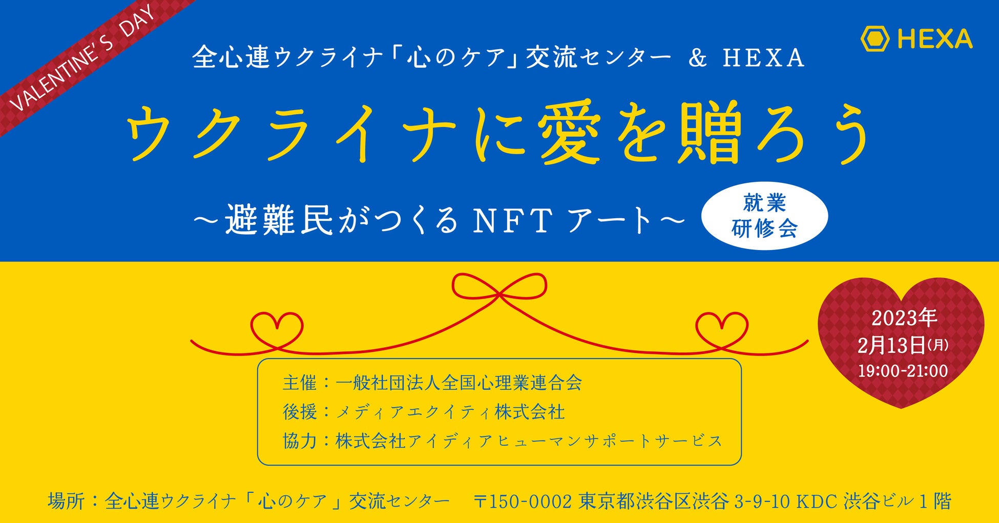 NFTマーケットのHEXA(ヘキサ)は、避難民の方々の経済的自立を支援するため、2/13(月)に全心連ウクライナ「心のケア」交流センターが主催する「バレンタインにウクライナに愛を贈ろう」プロジェクトを応援します。