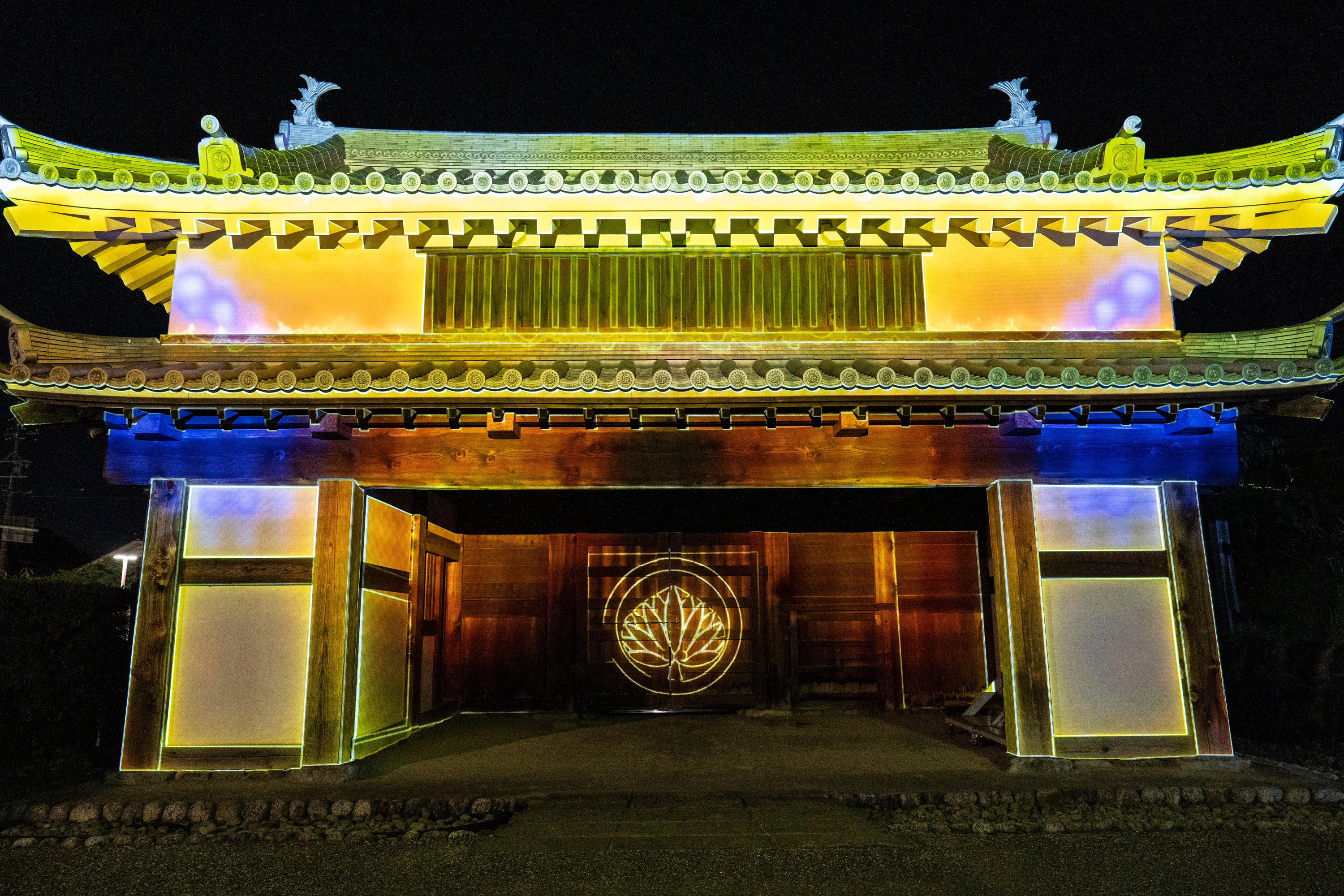【内容】 西尾城の本丸丑寅櫓や鍮石門に、初夏に咲き誇る西尾市のシンボルフラワー・バラなどの花々のデジタルアニメーションや、西尾市の歴史や文化をテーマにした豪華絢爛な絵巻などのプロジェクションマッピング映像を投影します。