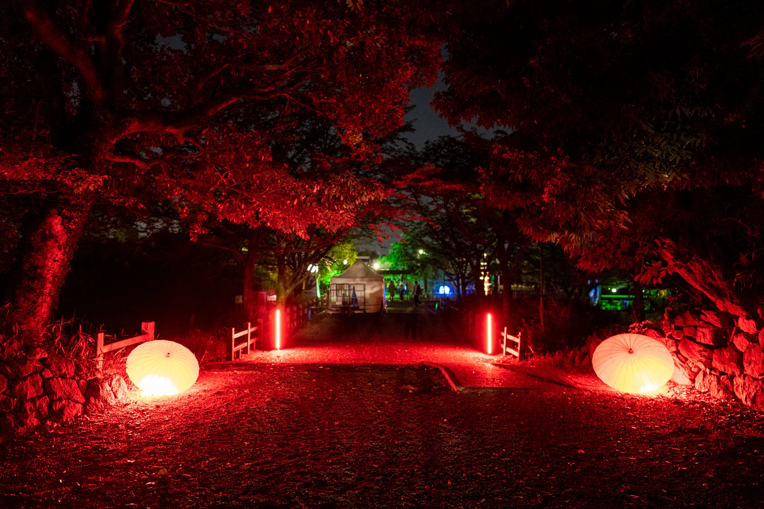 初夏に咲き誇る西尾市のシンボルフラワー・バラなどの花々のデジタルアニメーションや、西尾市の歴史や文化をテーマにした豪華絢爛な絵巻などのプロジェクションマッピング映像を投影。