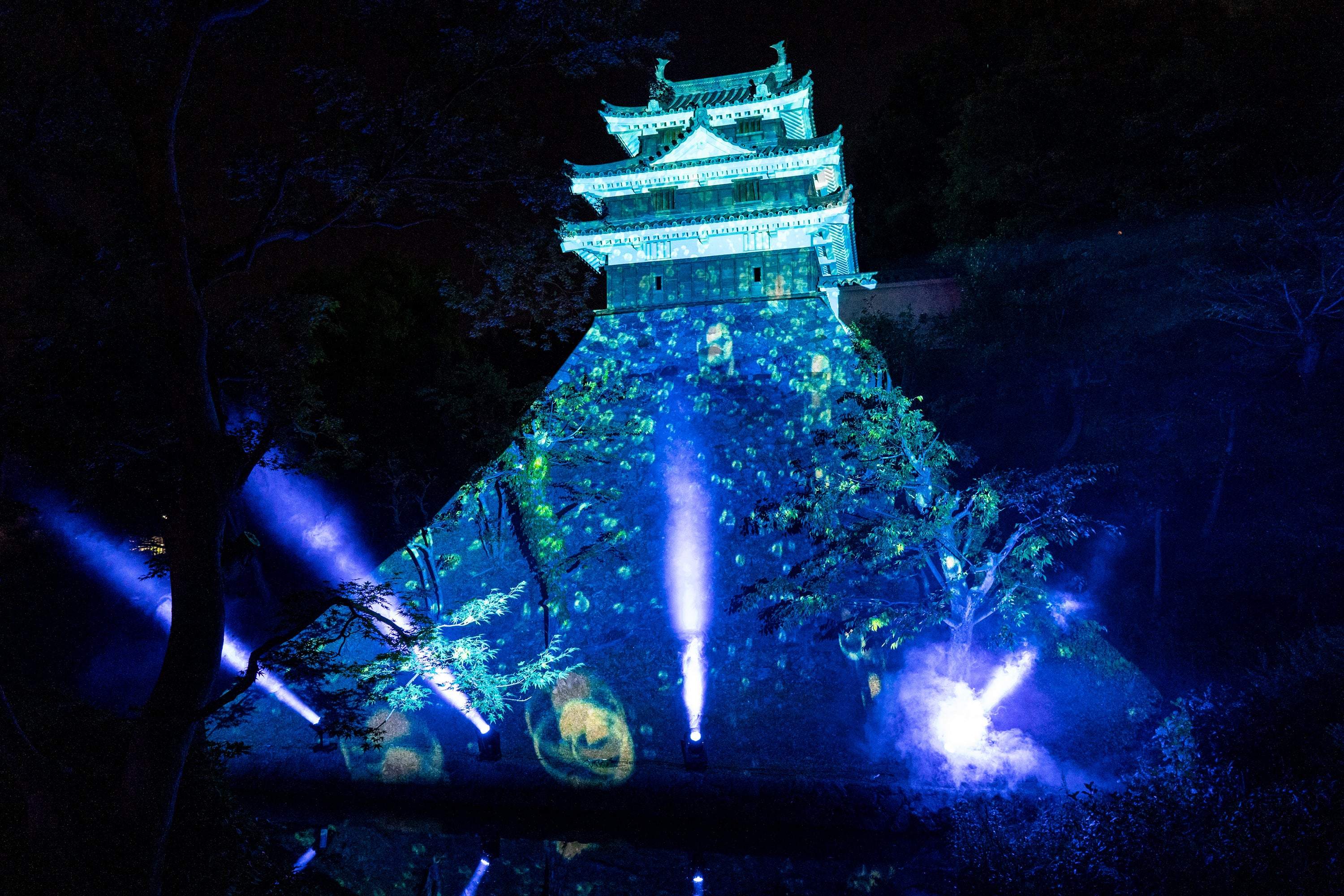 ※本丸丑寅櫓などに約6分間のコンテンツを約3分間のインターミッションをはさんで連続投影します。