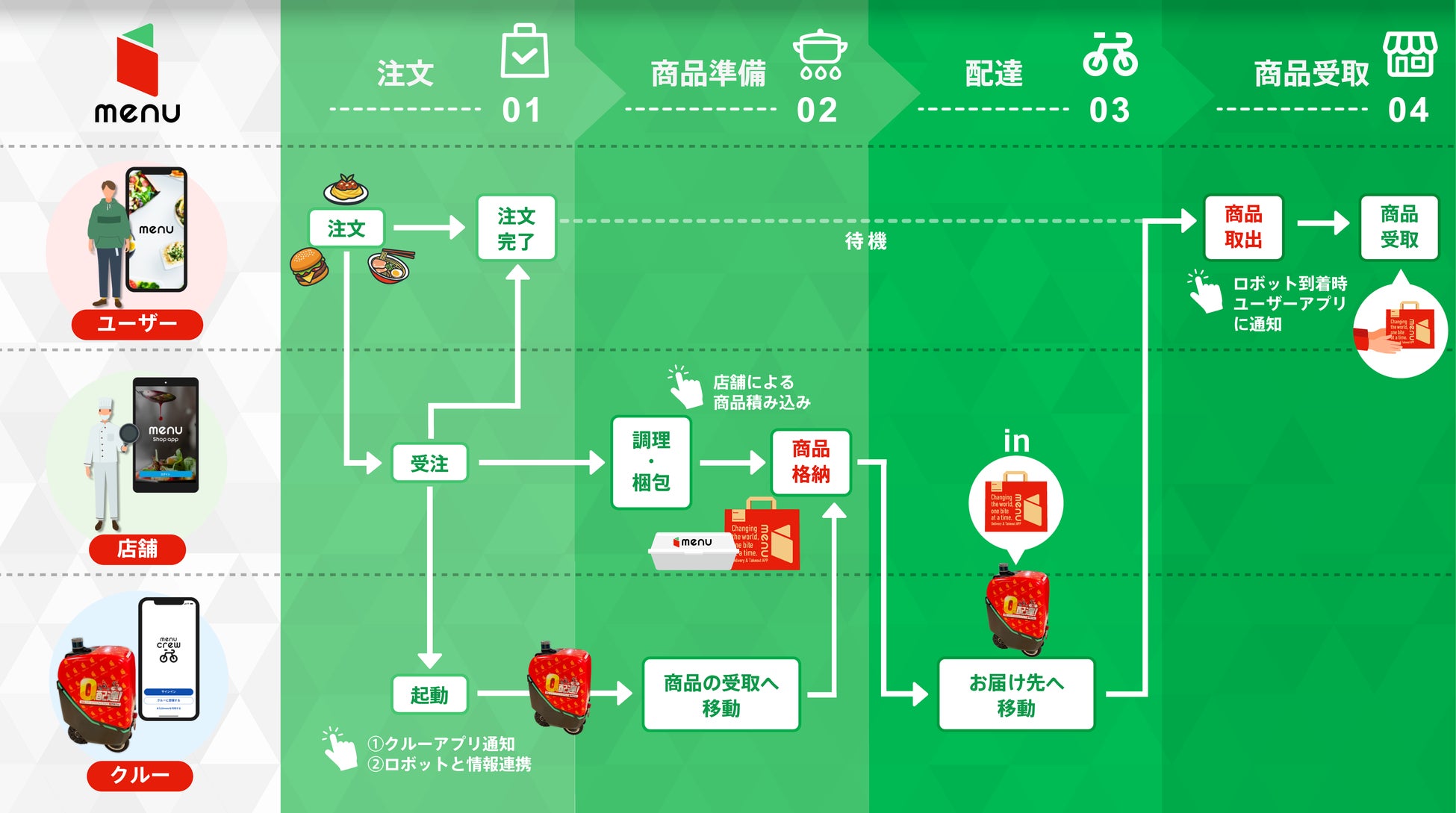 menuは、デリバリーアプリとして、社会インフラの役割を担う為に成長を続けており、求められるあらゆる物を、求めているあらゆる人に最善の方法で届けていける未来を目指しています。そのために、生活者・店舗・配達員がそれぞれベネフィットを感じる3方良しの基盤を作り、需要を伸ばし供給を安定化させる必要があります。供給の「安定化」に向けた一つの取り組みとして、配達員と配送ロボットが共存する世界へ大きく期待しています。