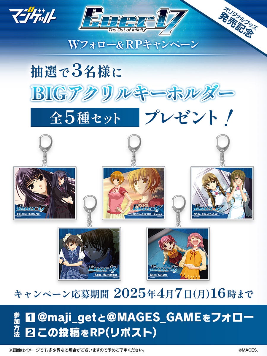「Ever 17 BIGアクリルキーホルダー5種セット」が抽選で3名様にあたる、XのWフォロー&リポストキャンペーンを開催!