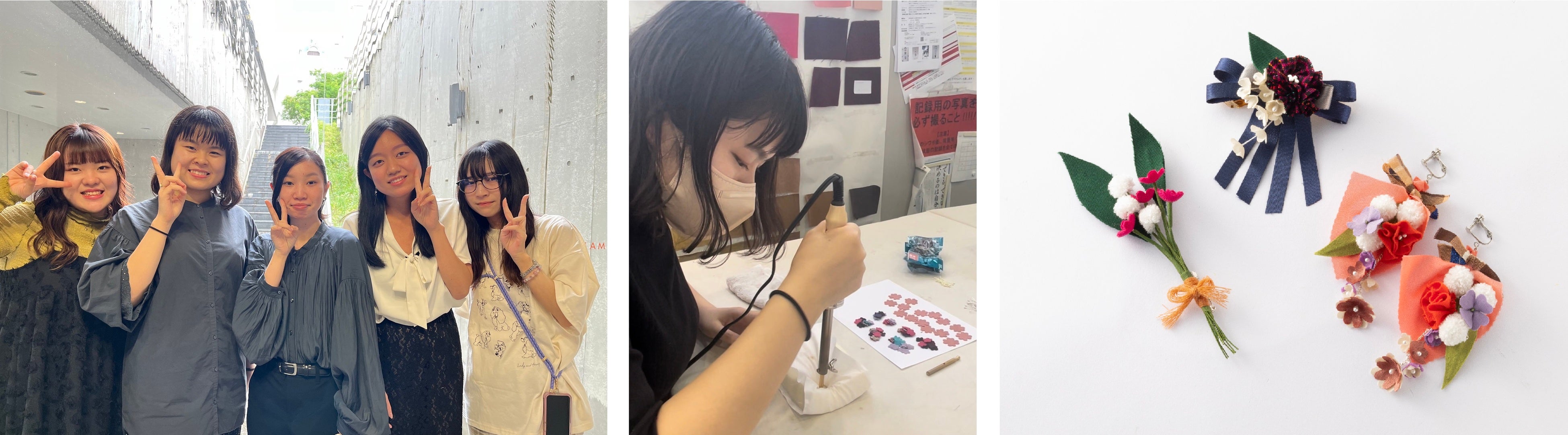 【椙山女学園大学「ulula」】 繊維商社×福祉施設と協業 未利用の繊維を使って障がい者と共に製作するアクセサリー 椙山女学園大学×瀧定名古屋×社会福祉法人 名古屋市身体障害者福祉連合会の協業プロジェクト。未利用繊維素材を使って、学生がデザインしたブーケのアクセサリーを、障がい者の方と製作。