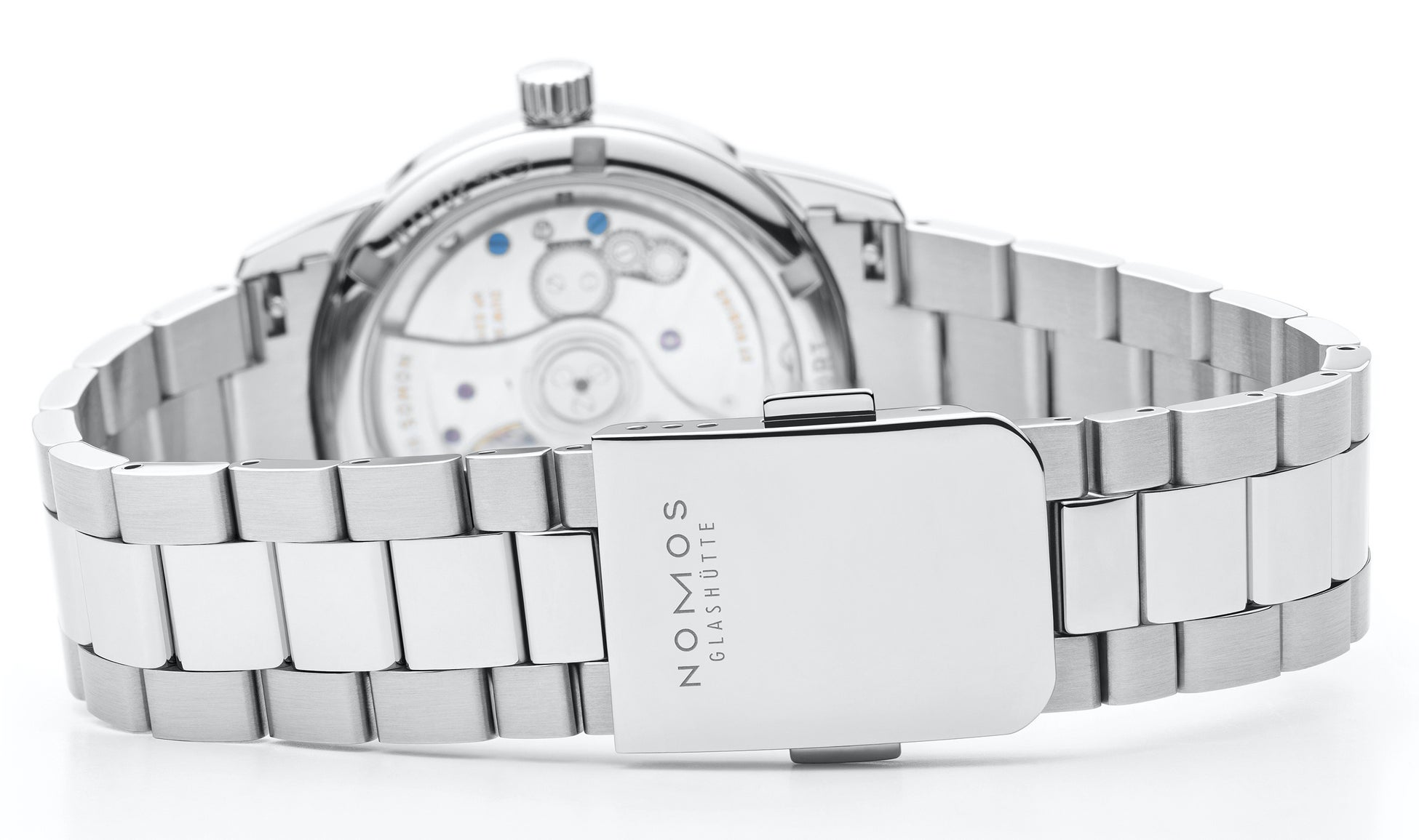 この新作はノモス グラスヒュッテにとってまったく新しい時計、それは女性、そして手首の細い男性のための自動巻きスポーツウオッチです。直径わずか34mm、厚さ8.2mmの最小ウオッチは、フォーマルな場で着用できるエレガンスさを備えつつも多くの堅牢な機能をフルに搭載。20気圧防水性能に自社製自動巻きムーブメントを搭載し、一体型ブレスレットの美しいデザインで、あらゆるマリンスポーツに対応します。輝くサンバースト仕上げのダイアルは美しい3色 ” ゴールド、ロゼ、パープル “ の展開です。