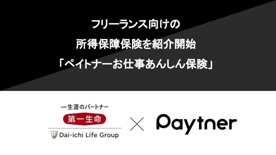 ペイトナーと第一生命保険株式会社が協業し、フリーランス向けの所得保障保険「ペイトナーお仕事あんしん保険」を紹介開始