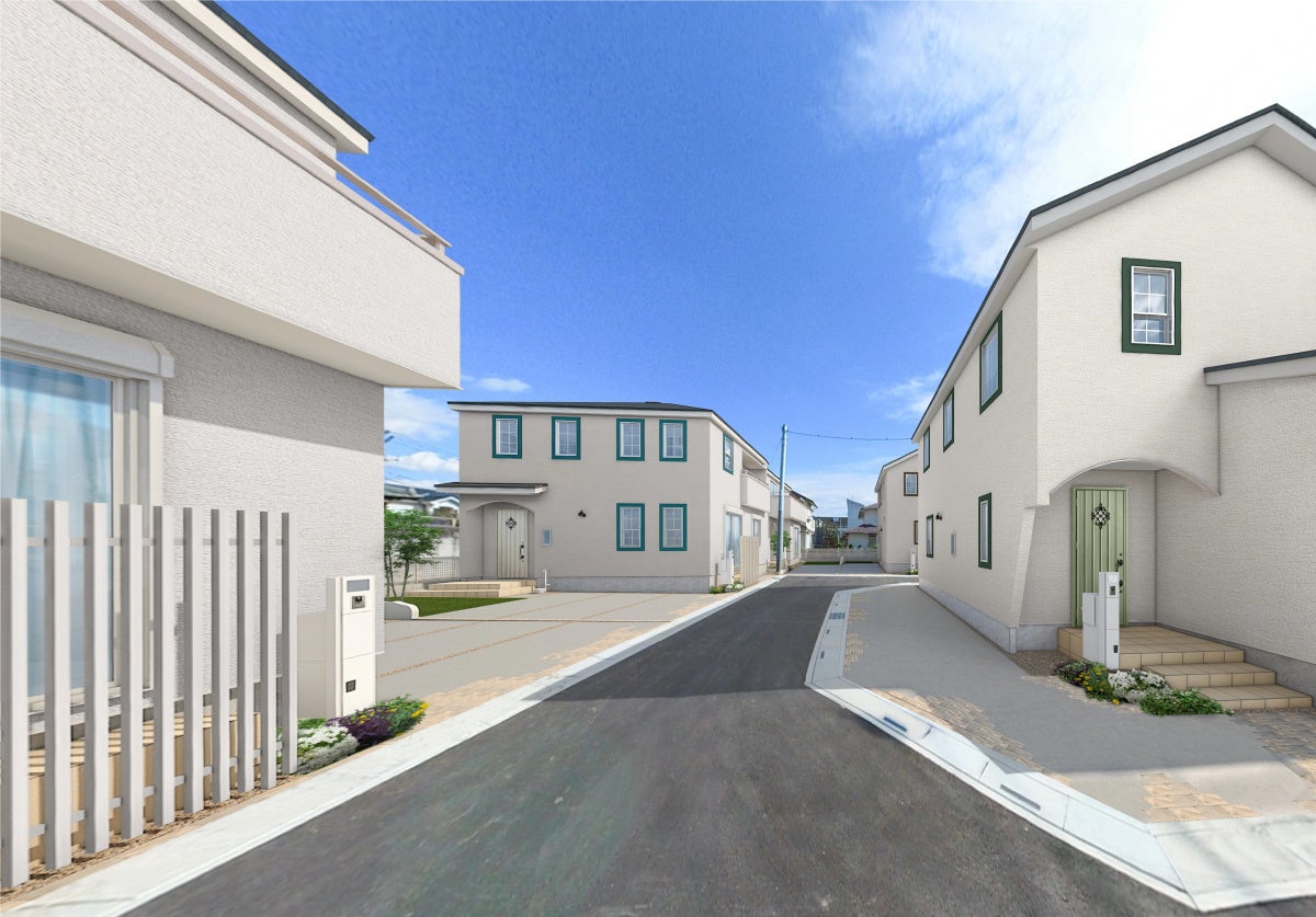 そんな閑静な住宅街に、白を基調とした爽やかな外壁に窓モールの色彩が印象的な全7邸の街並みが誕生します。慌ただしい日々に追われるのではなく、ゆったりとスローライフを満喫できる街並みです。この街の真っ白なキャンバスを家族の色に染める、穏やかな暮らしが叶います。