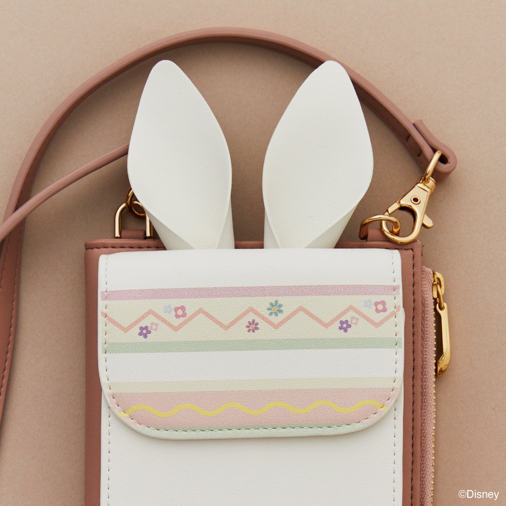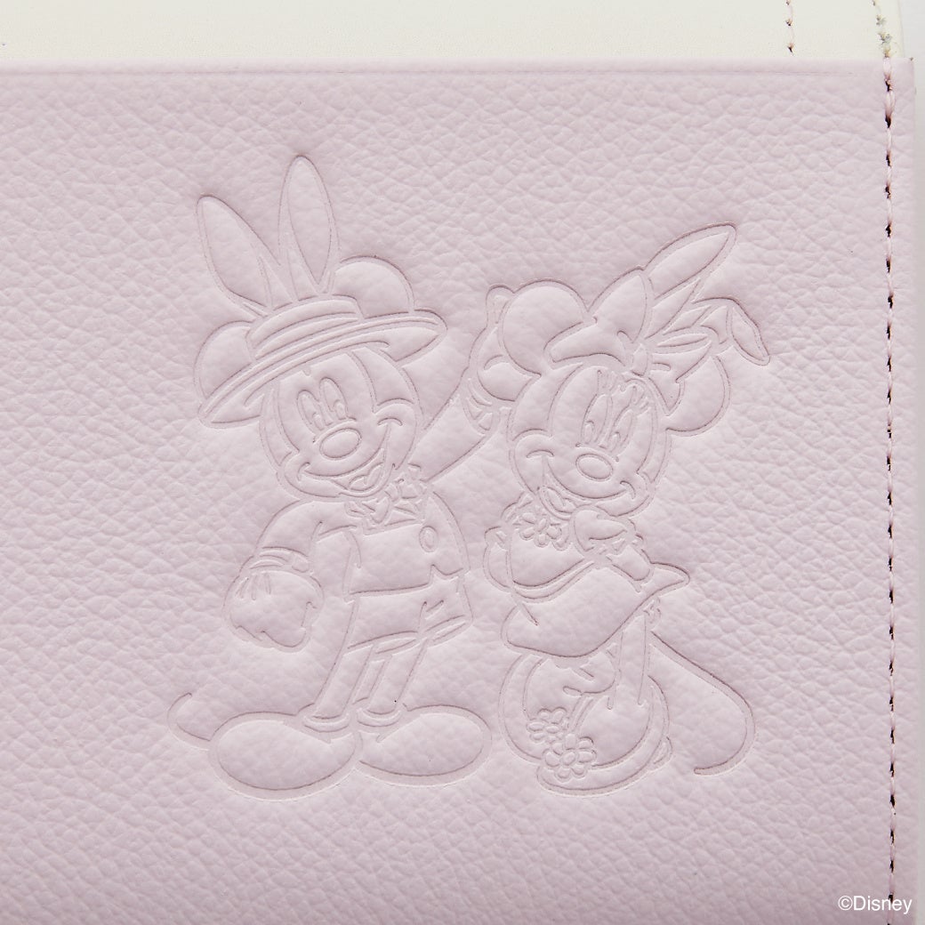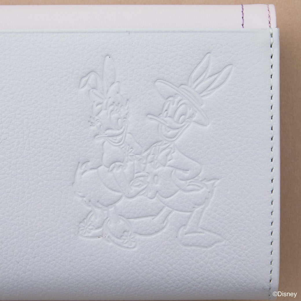 ウォレットショルダーの背面や横マチ部分にはイースターエッグに扮した「ミッキーマウス」、「ミニーマウス」、「ドナルドダック」、「デイジーダック」の型押しが。