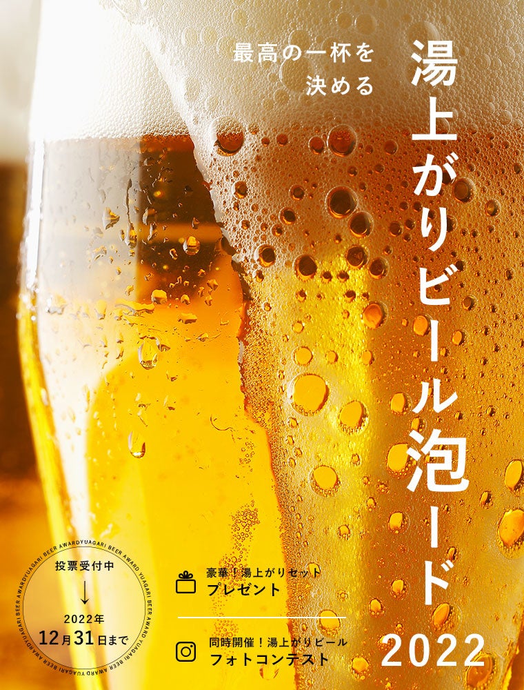 お風呂とビールの祭典が今年も開催!お風呂上がりに飲みたいビール1位を決める「湯上がりビール泡ード2022」投票開始