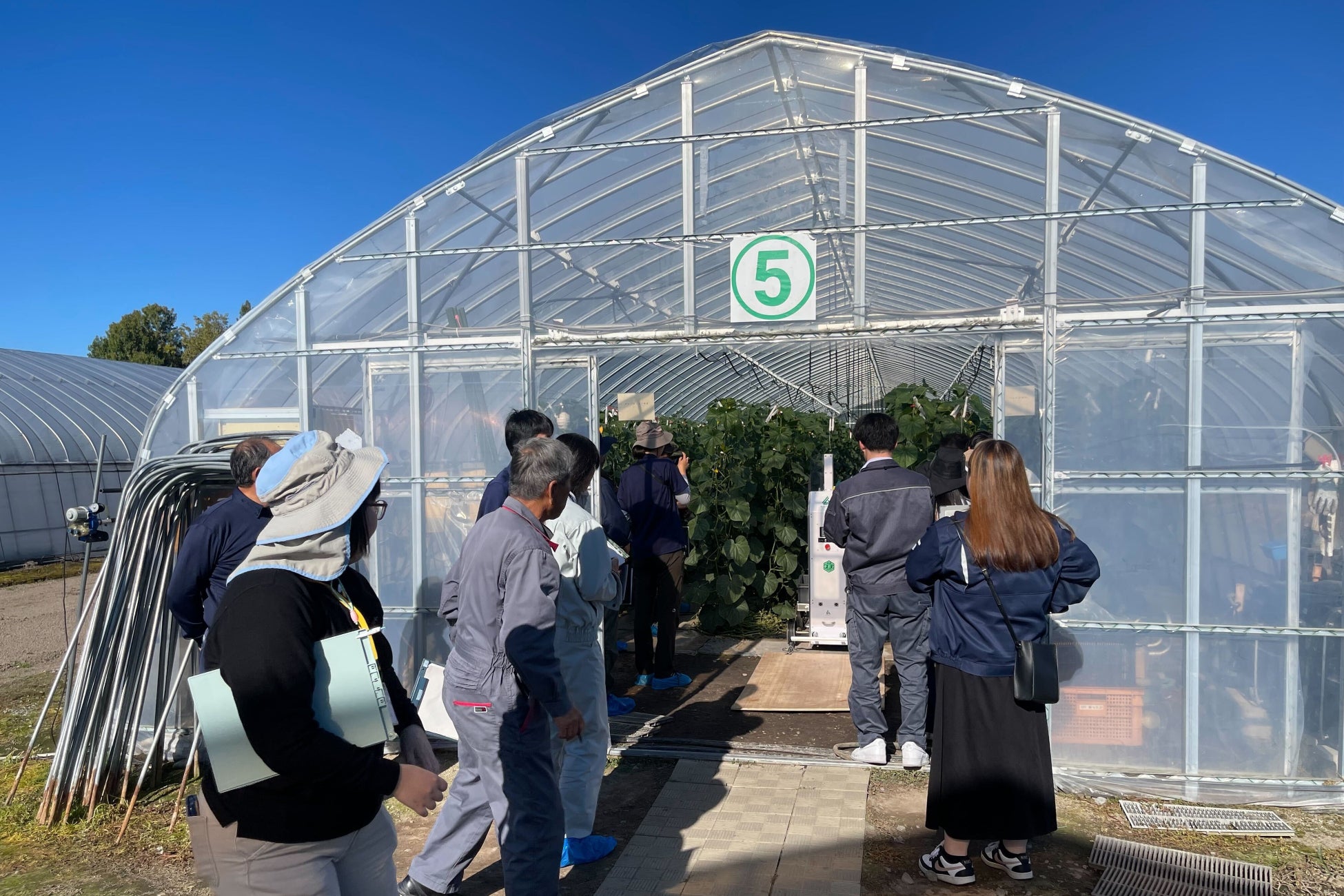 農業課題をディープテックで解決するAGRIST株式会社(本社:宮崎県新富町、以下「AGRIST」)は、この度、北海道・北空知地域にあるJAきたそらち(深川市)が企画し、農業研修施設「あったかファーム」(鷹栖町)に協力いただき、AGRISTが開発したAI搭載のキュウリ自動収穫ロボットQの実証実験を9月30日~10月3日にかけて4日間にわたり実施しました。期間中、自治体や農業関係者など100名以上の現地視察を受け入れました。