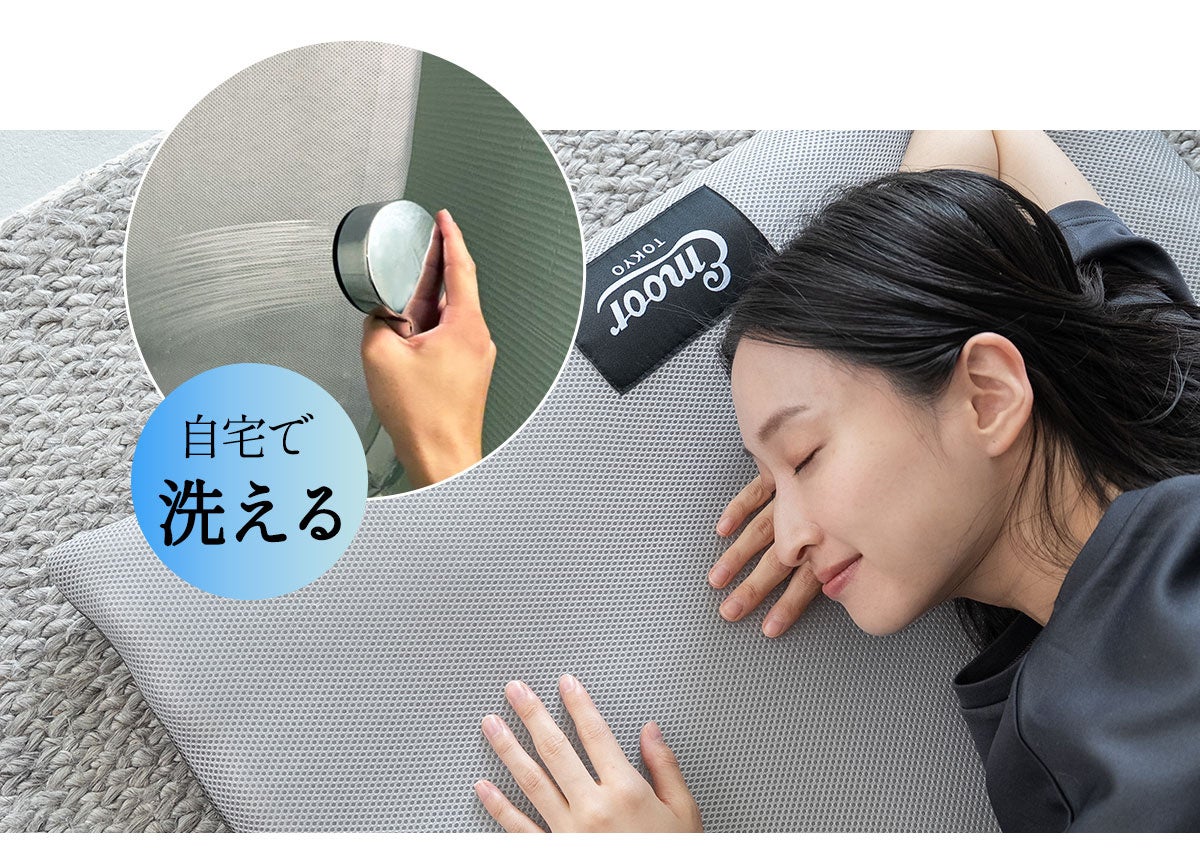 シーズンを問わず丸洗いが可能なため、汗や汚れを気にせずいつでも清潔。衛生面を重視する方や、家族での共用にも安心です。丸洗いした後に乾かす際は、本体を上下にひっくり返しながらよく振って、水をよく切ってください。