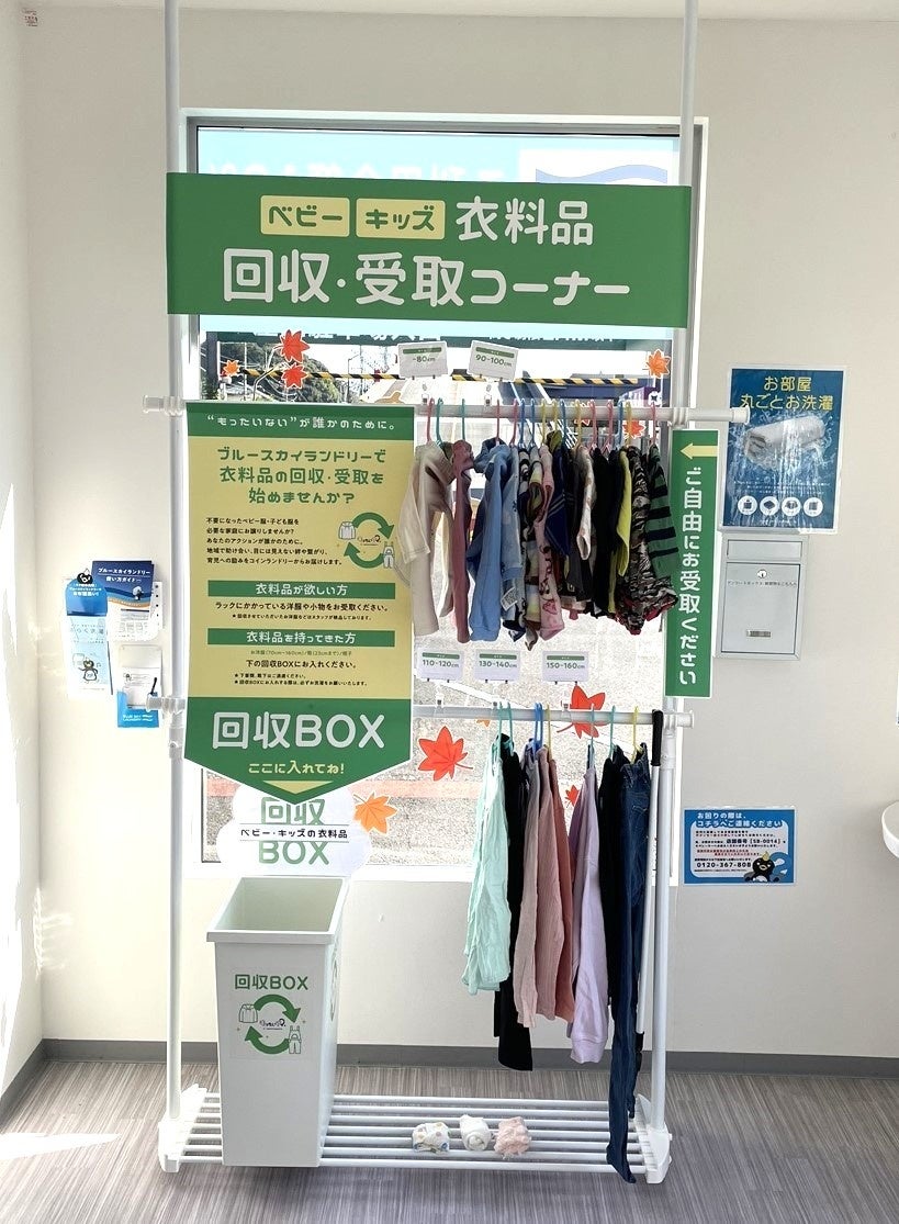 全国で203店舗のコインランドリー「ブルースカイランドリー」を展開する、株式会社ジーアイビー(本社:名古屋市中区、代表取締役:鈴木衛)は、かねてより一部店舗で、衣類回収BOX、受取りラックを設置し、子供服の回収・受取りが行える取り組みを実施してまいりましたが、この度11月23日より、新たに6店舗拡大し、全11店舗にて取り組みを開始しましたことをお知らせいたします。