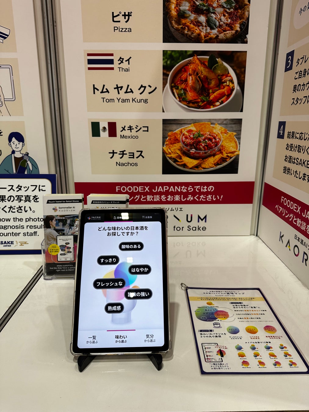 言葉では伝えにくい日本酒の風味を分かりやすく表現でき、日本語以外にも英語や中国語に対応しています。そのため、新たなペアリングのご提案を通じて、海外バイヤーをはじめとする多くの来場者に向けて日本酒の魅力を発信しました。