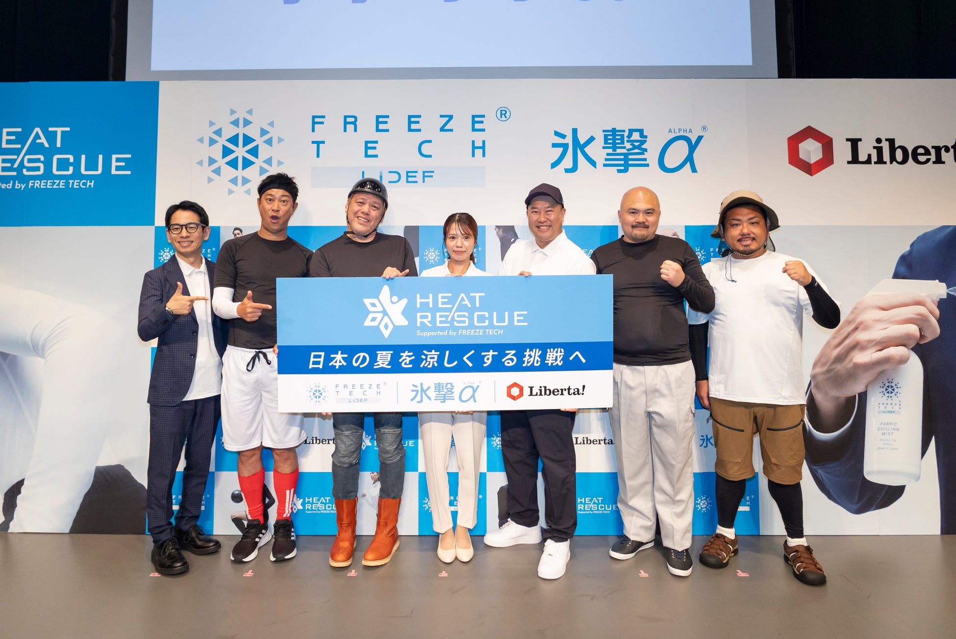 “喜びを企画して世の中を面白くする”商品を流通させる株式会社リベルタ(東京都渋谷区、代表取締役社長:佐藤透、以下「リベルタ」)が展開するクーリングウェア・ギアブランド「フリーズテック」は、『ニッポンの夏を涼しく変える!』をキーメッセージとした「HEAT RESCUE PROJECT(ヒートレスキュー プロジェクト)」の一環として、吉本興業所属芸人をPRサポーターに迎えた記者会見を実施しました。