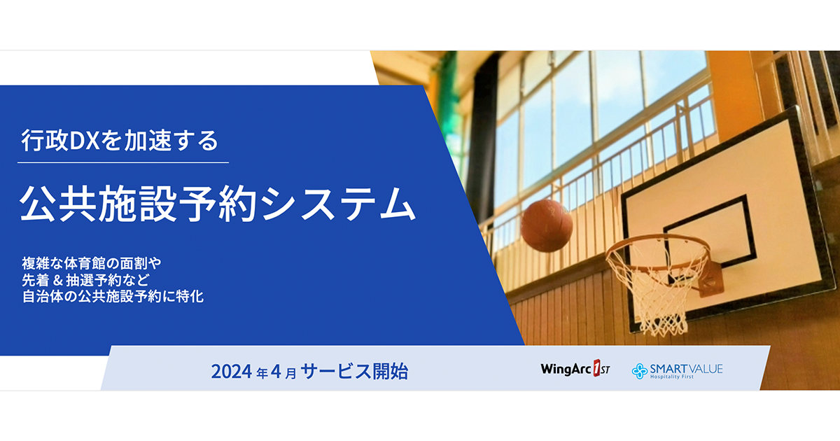 ウイングアーク1st株式会社(本社:東京都港区、代表取締役 社長執行役員CEO:田中 潤、以下、ウイングアーク1st)と、株式会社スマートバリュー(本社:大阪府大阪市、取締役兼代表執行役社長:渋谷 順、以下:スマートバリュー)は、自治体向けの公共施設予約システムを共同で開発し、2024年4月より提供開始します。