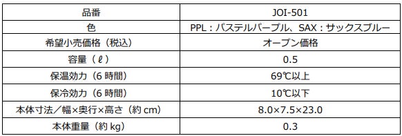 『サーモス 真空断熱キッズケータイマグ(JOI-501)』 仕様一覧