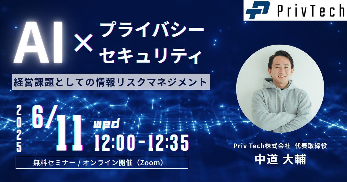 【Webセミナー】Priv Tech『経営課題としての情報リスクマネジメント:AI x プライバシー x セキュリティ』6月11日(水)12時開催