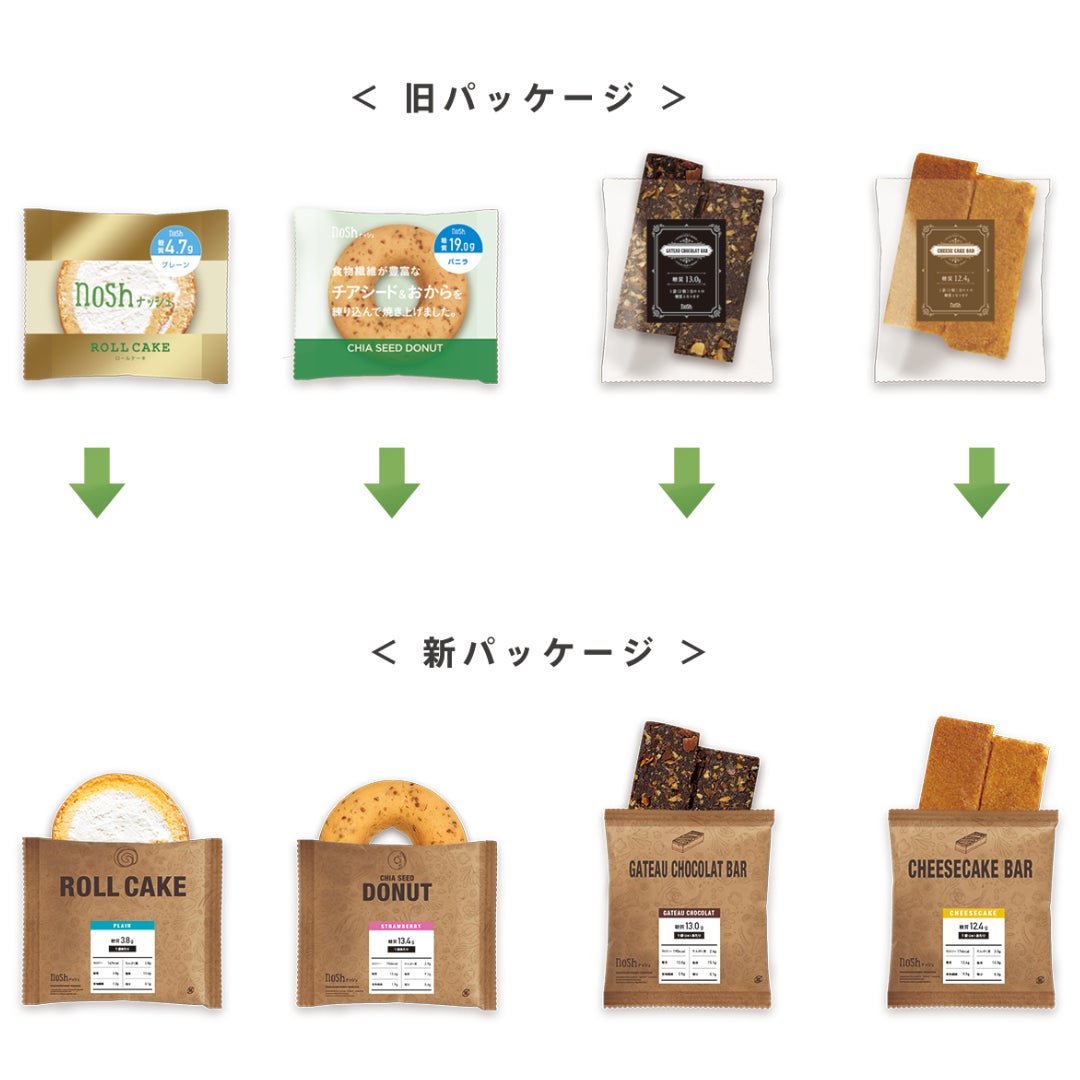 手軽に美味しく栄養管理ができる冷凍宅配食サービス「nosh」を手掛けるナッシュ株式会社(本社・大阪市、代表取締役 田中 智也)は、ロールケーキとケーキバーのデザート包材をPPフィルムからナチュラルな素材感のクラフトへと、8月下旬出荷分から順次リニューアルすることをお知らせいたします。