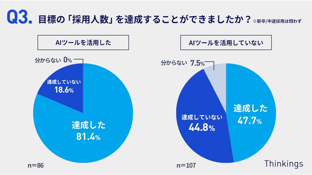 AI活用の有無が採用活動の成否に影響。活用した81.4%が採用目標数を達成、73.3%が人員リソースに充足