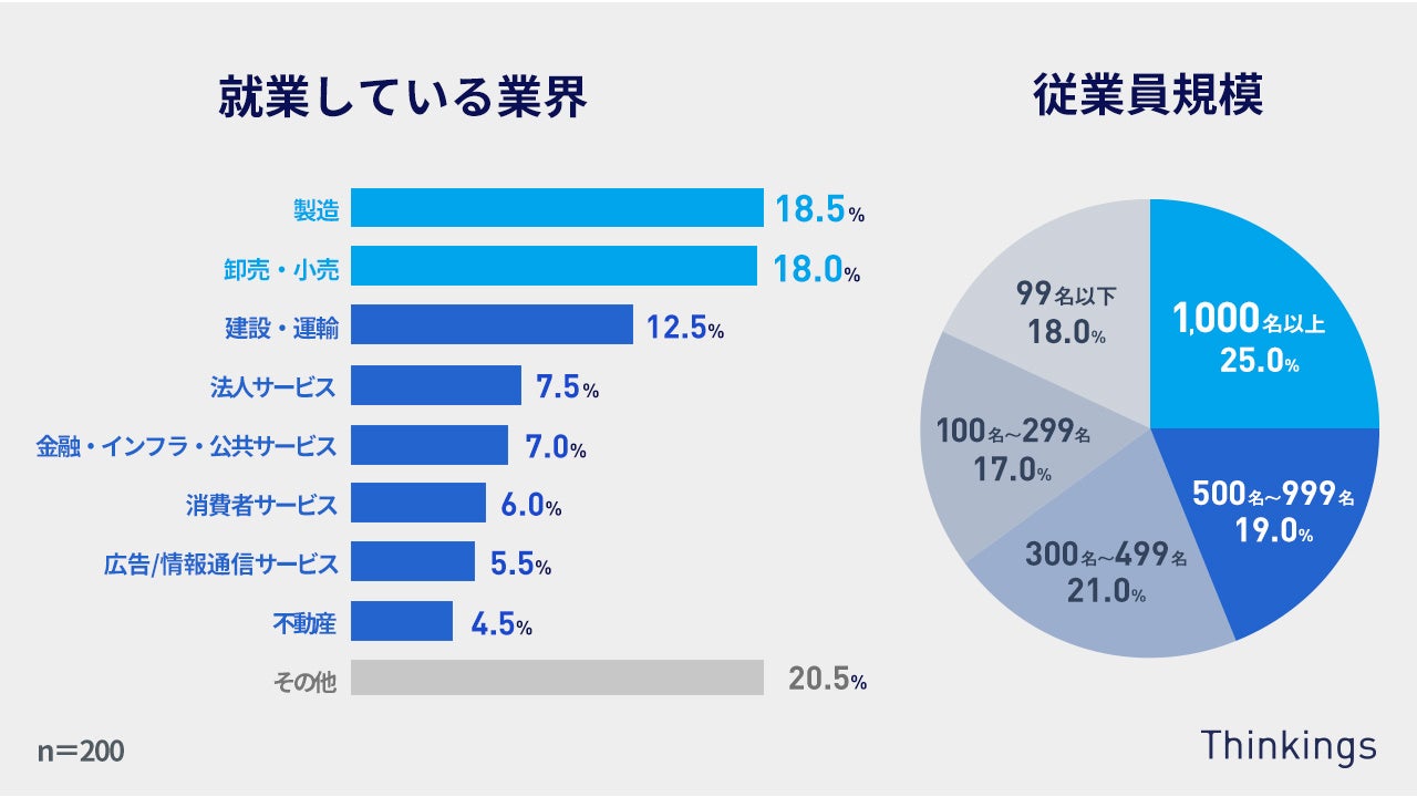 ・回答者の属性(業界、従業員規模):以下グラフをご参照ください