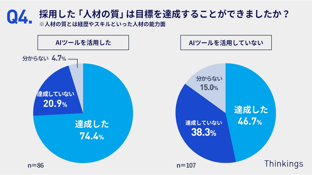 採用した「人材の質」においても、AIツールを活用した人の74.4%が目標を達成