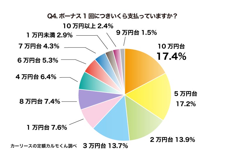 - ボーナス1回あたりの支払いは「10万円」が最多、続いて「5万円」