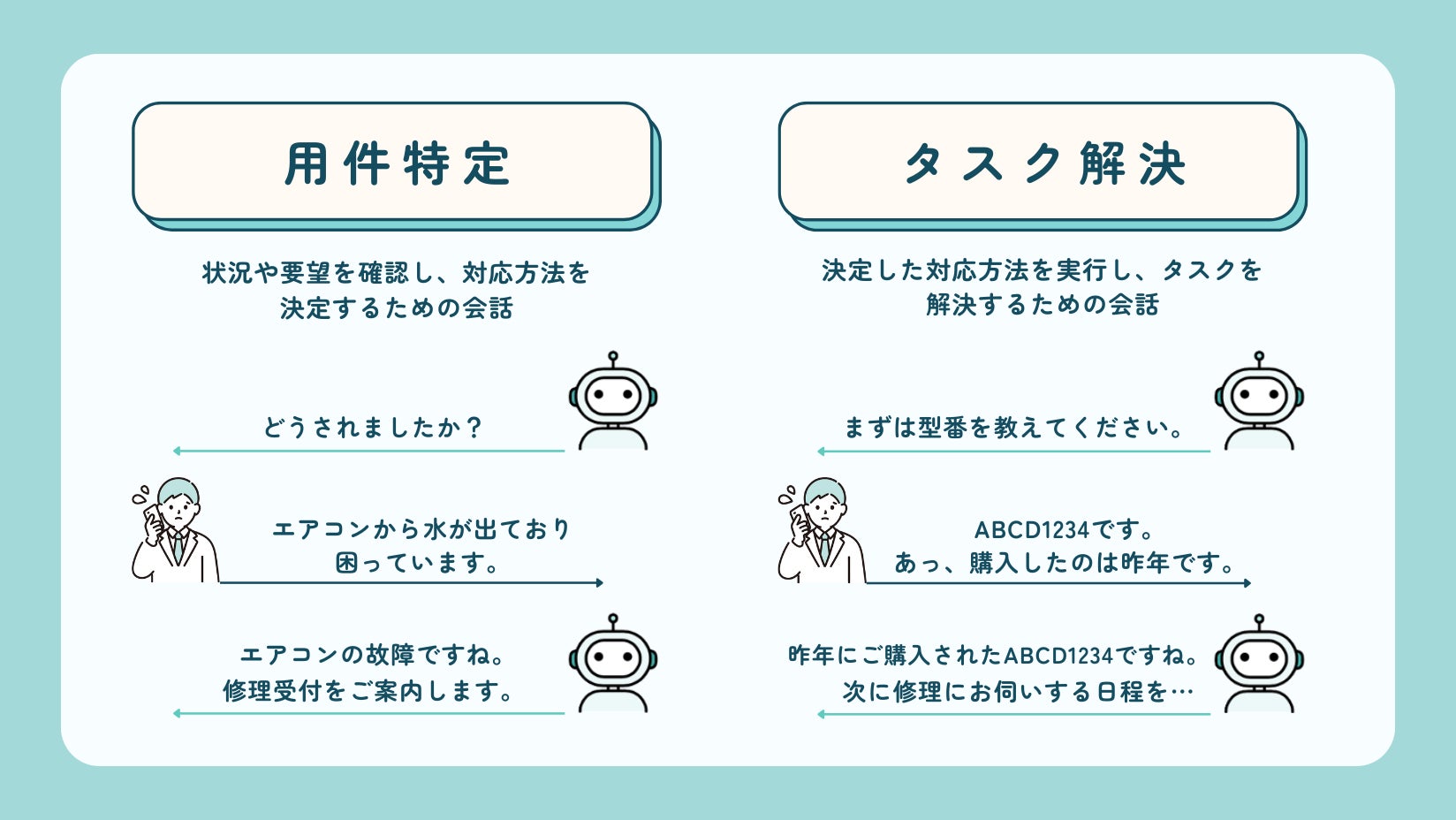 ①「どうされましたか?」から始まる複雑な用件特定が可能になり、活用範囲が拡大