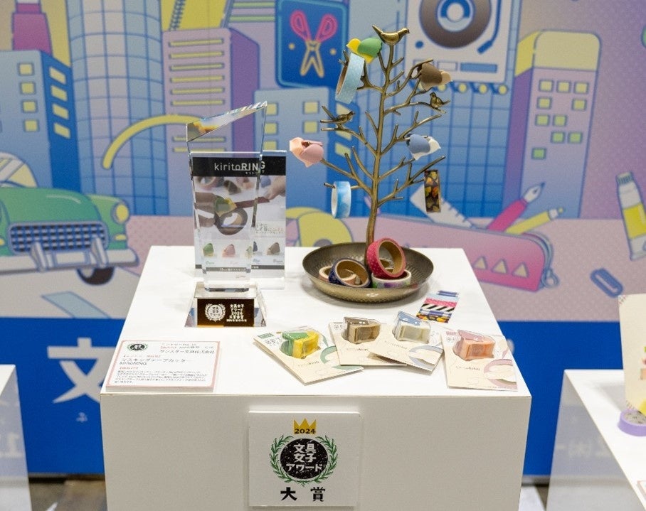「文具女子博2024」会場内には各社がエントリーしたイチオシの文具が展示され、お客様に「これは良い!」と思った商品に投票していただきました。今年は111点の商品がエントリー。見事大賞に選ばれたのは、「マスキングテープカッター kiritoRING」!親指にはめて使うタイプのマスキングテープカッターです。付け替え不要で楽々とカットできるので、複数のマスキングテープを使いたい場合にも便利なアイテムです。おめでとうございます!!