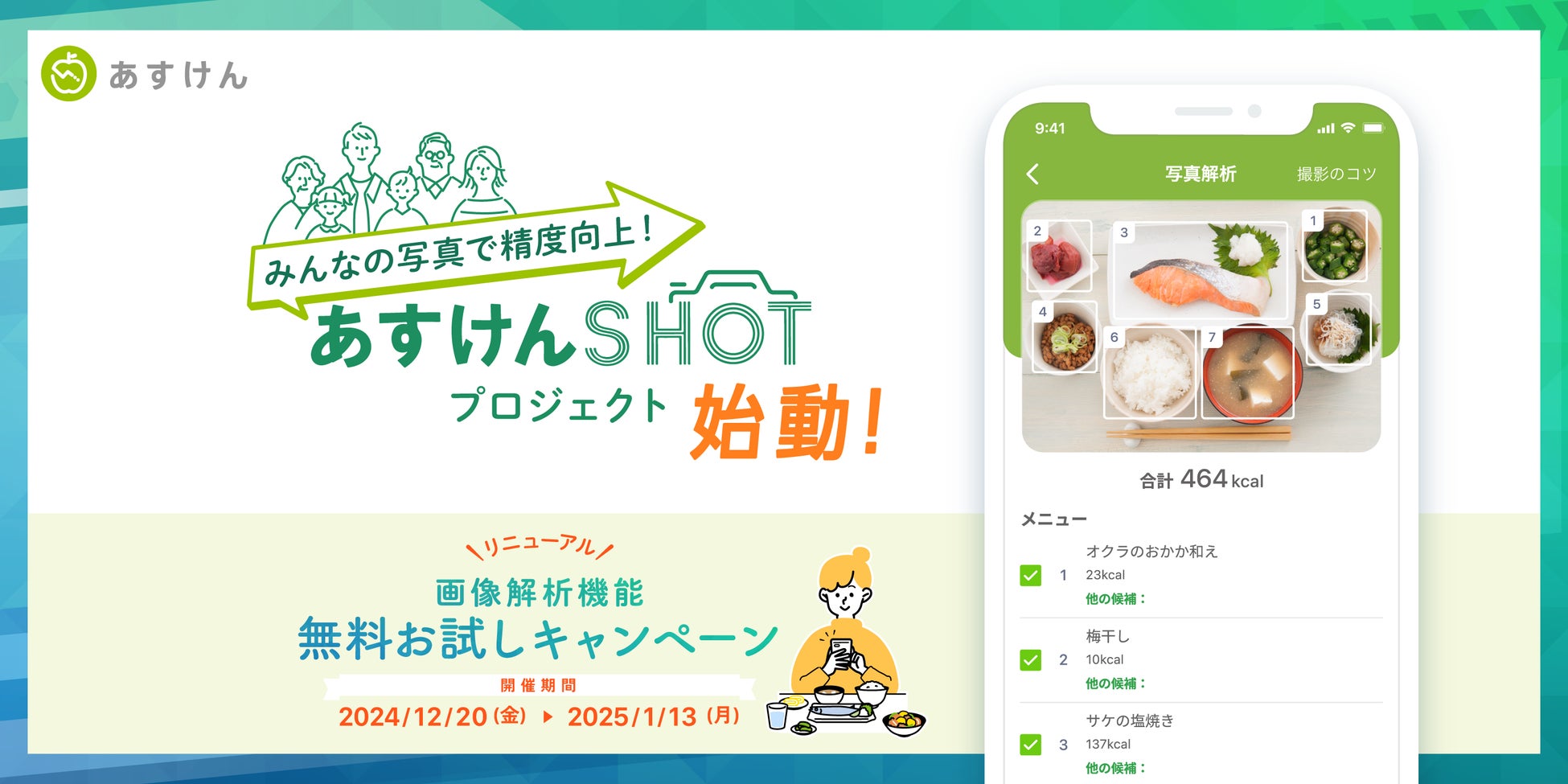 累計会員数1,100万人超・国内No.1*¹のAI食事管理アプリ『あすけん』の開発・運営を行う株式会社asken(東京都新宿区、代表取締役社長 中島洋、以下「当社」)は、『あすけん』アプリ内で提供している「AI画像解析機能」の精度向上に継続的に取り組む「みんなの写真で精度向上!あすけんSHOTプロジェクト」(以下「本プロジェクト」)を始動したことをお知らせいたします。