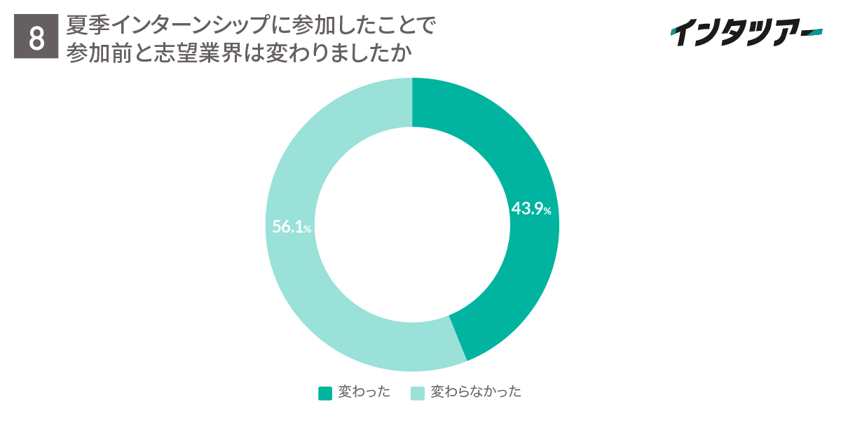 夏季インターンシップ参加で志望業界が変わった学生は43.9%