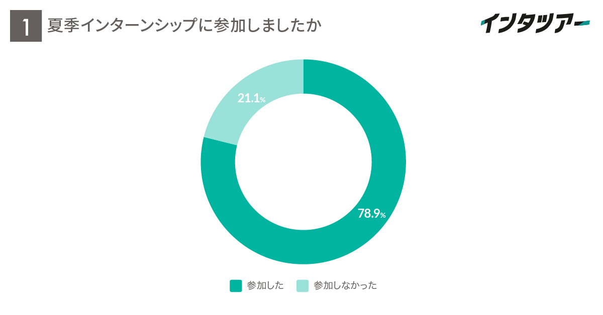設問1では、夏季インターンシップの参加について聞きました。インターンシップに「参加した」と回答した学生は78.9%で、大多数の学生が夏季インターンシップを活用していました。
