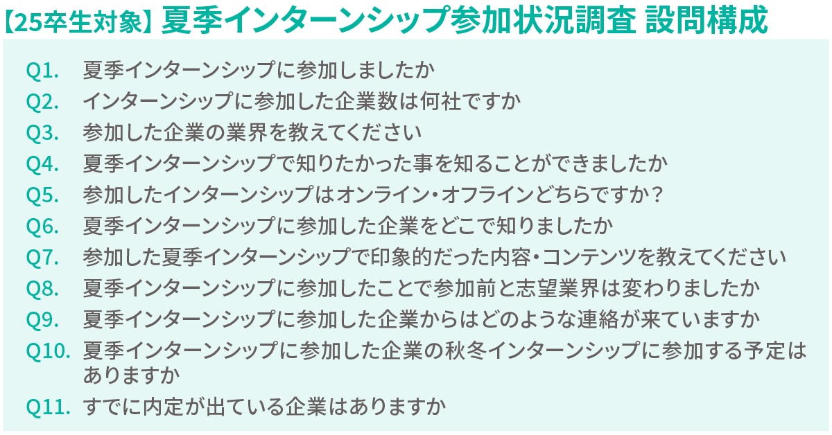 25卒対象 夏季インターンシップ参加状況調査 設問構成