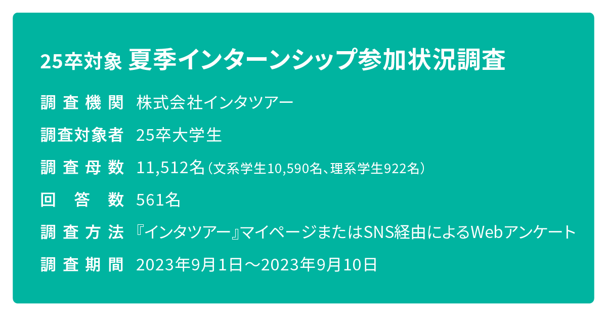 『25卒対象 夏季インターンシップ参加状況調査』2023年9月実施 株式会社インタツアー