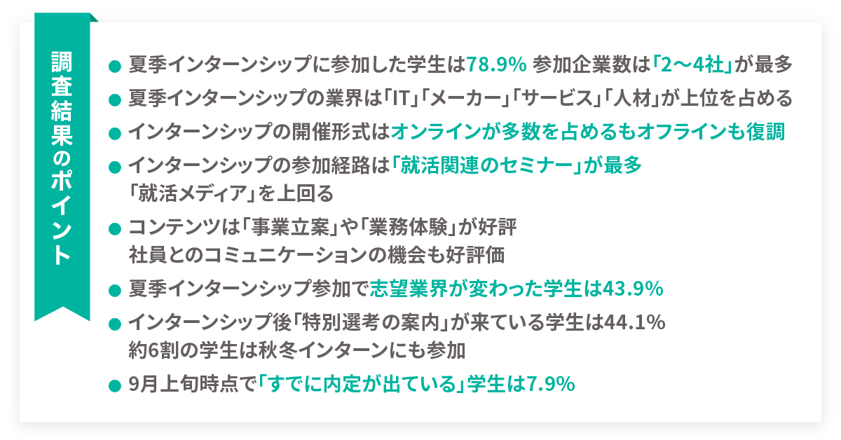 インターンシップ後「特別選考の案内」44.1% 約6割の学生は秋冬インターンにも参加