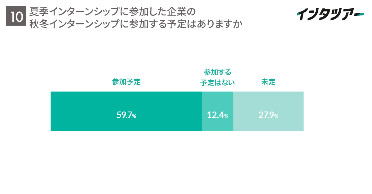 設問10では夏季インターンシップに参加した企業の秋冬インターンシップに参加する予定があるか聞きました。