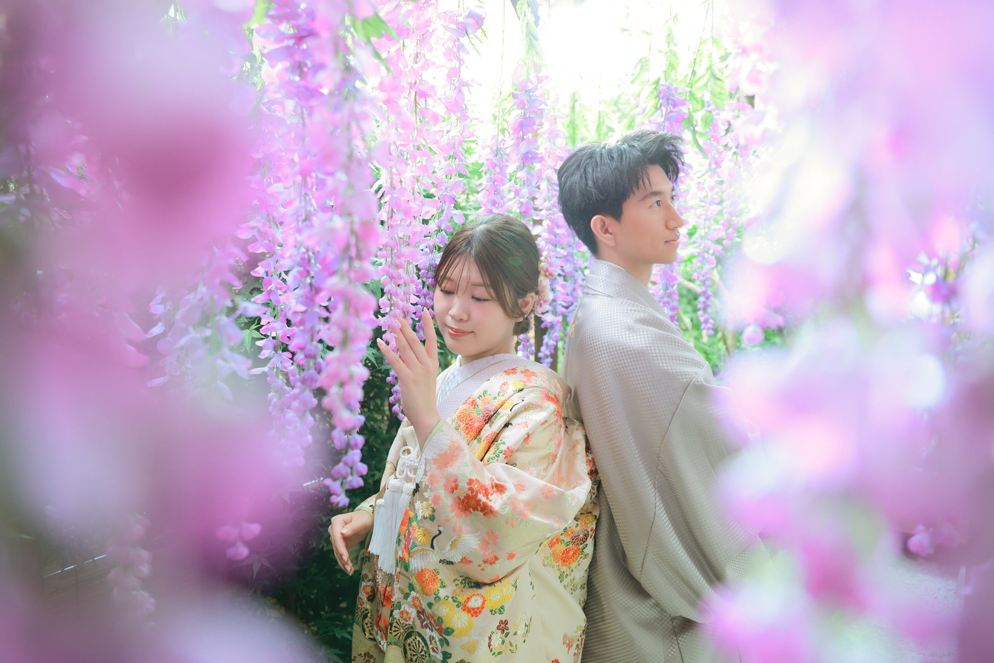 新たに登場するのは、店舗ごとに異なるデザインでさまざまな表情を見せる「ボタニカルガーデン」。また、和装撮影で人気の屋内庭園スタジオには「藤棚」の新セットが加わり、より一層、和の風情を引き立てます。