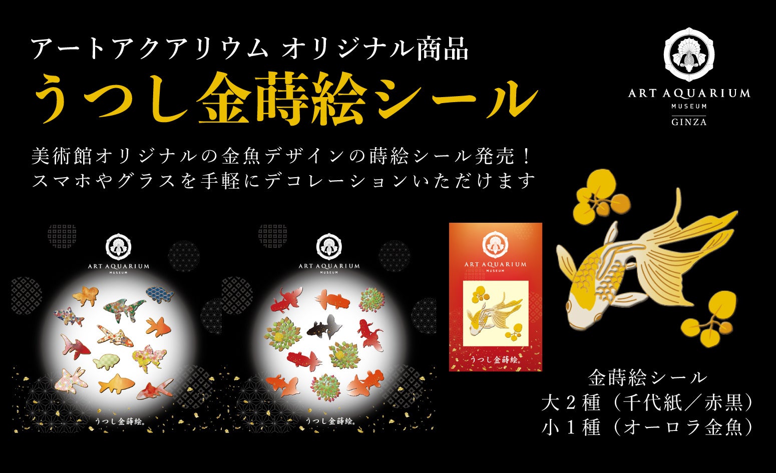 本格的な蒔絵を、金蒔絵シールで気軽に楽しめる アートアクアリウム美術館 ミュージアムショップグッズに金魚のうつし金蒔絵シールが新登場