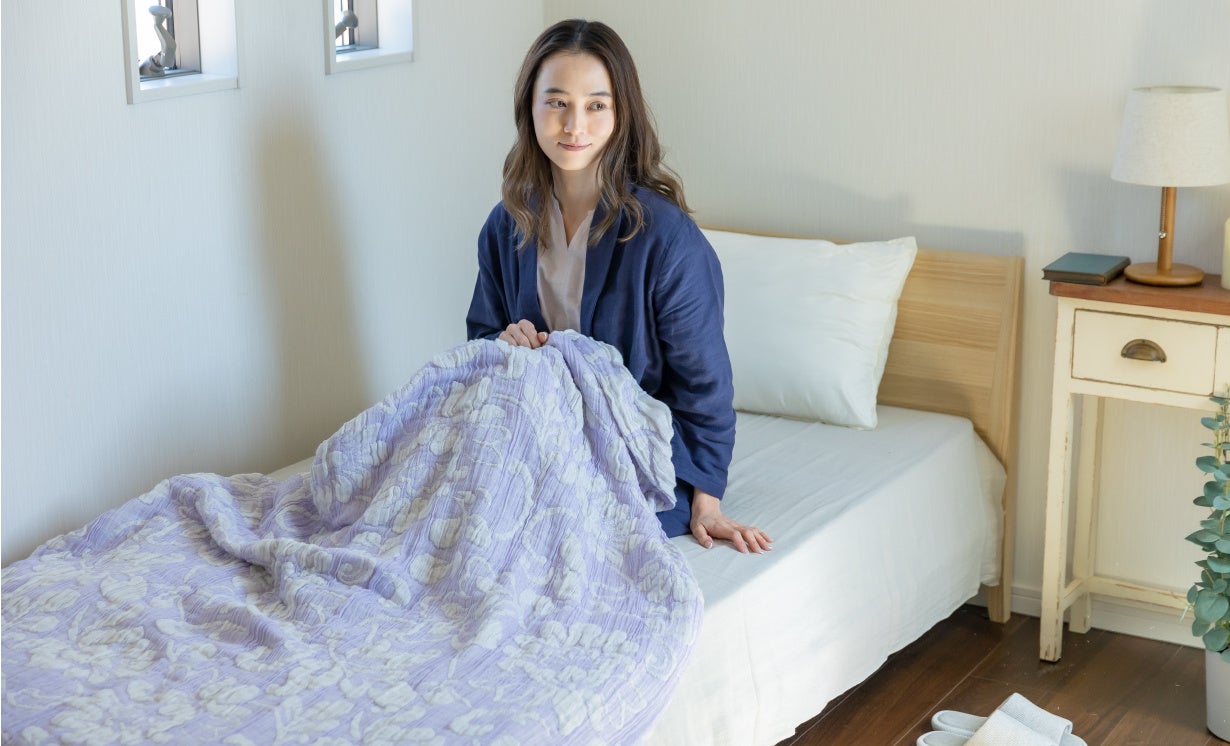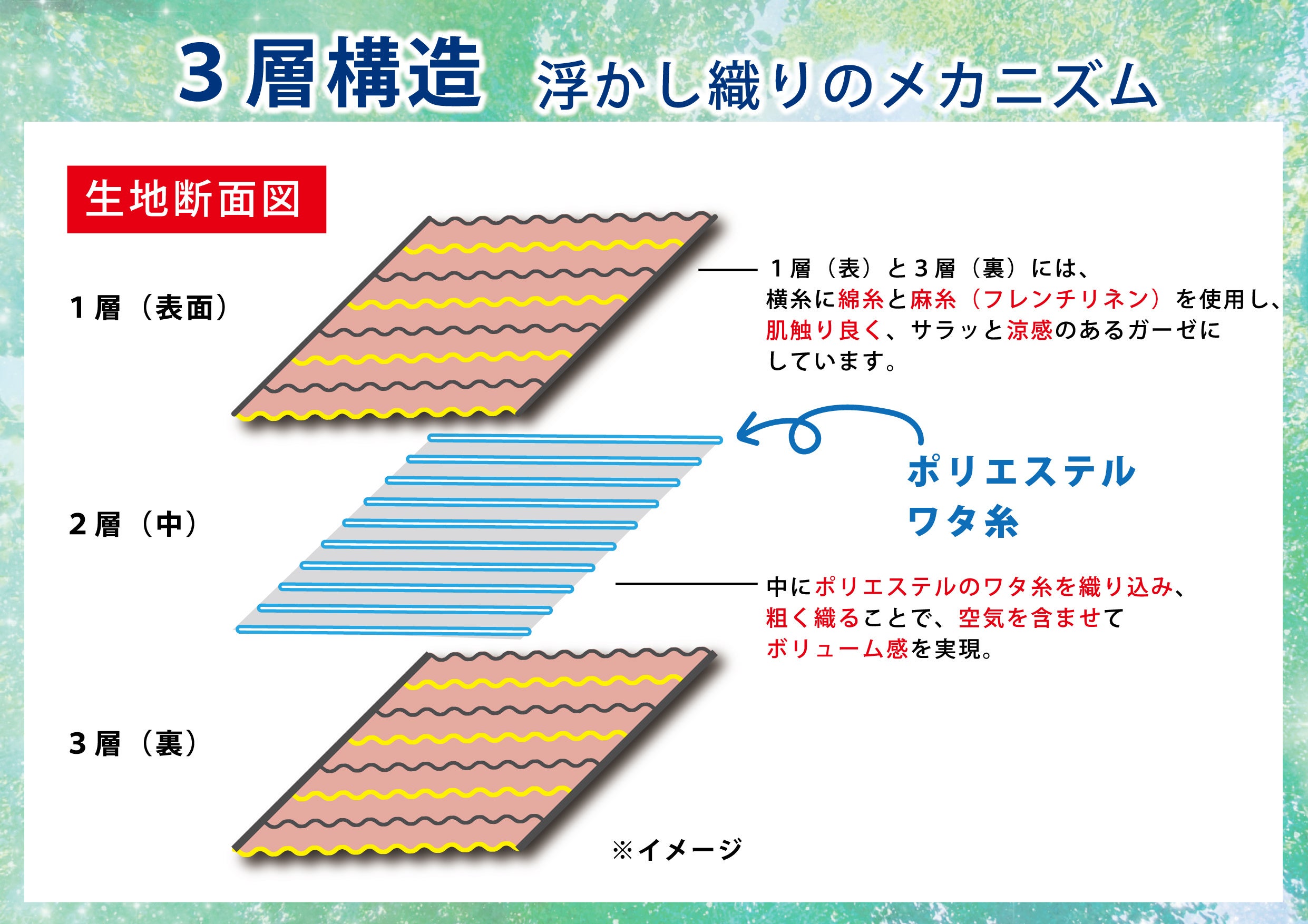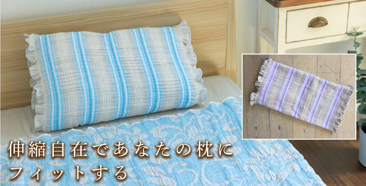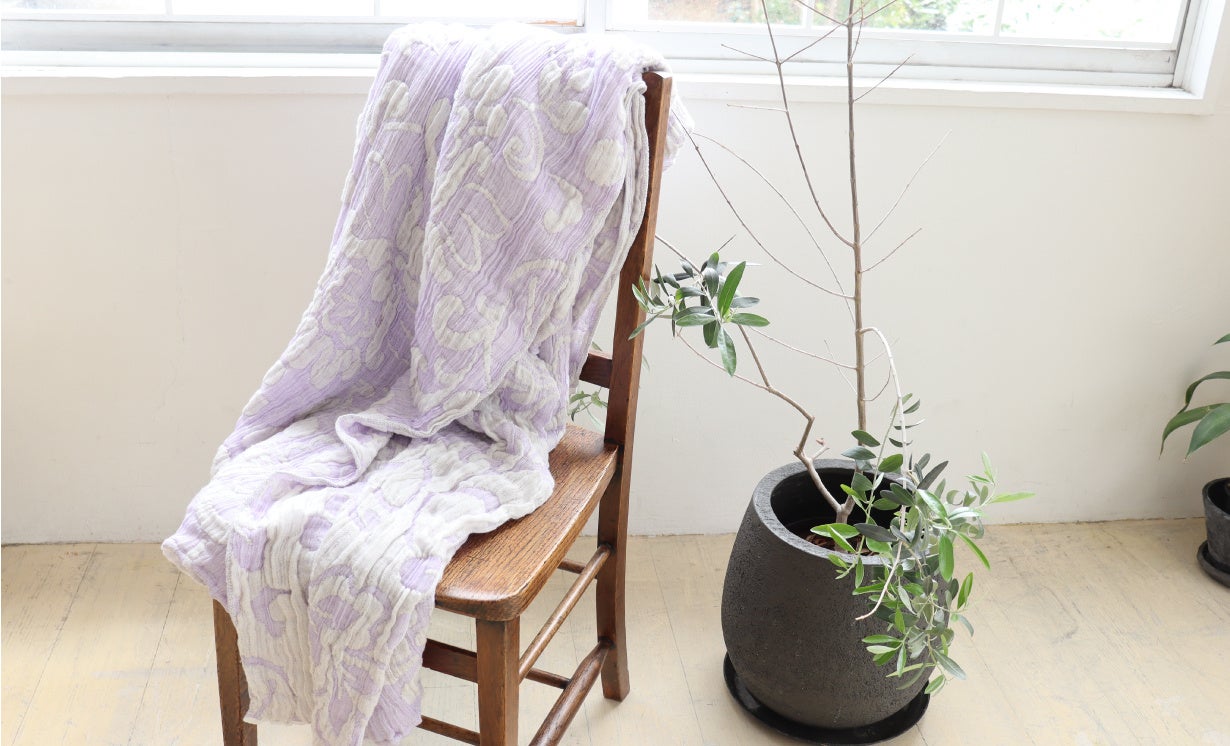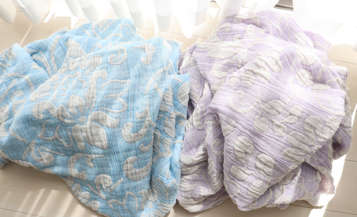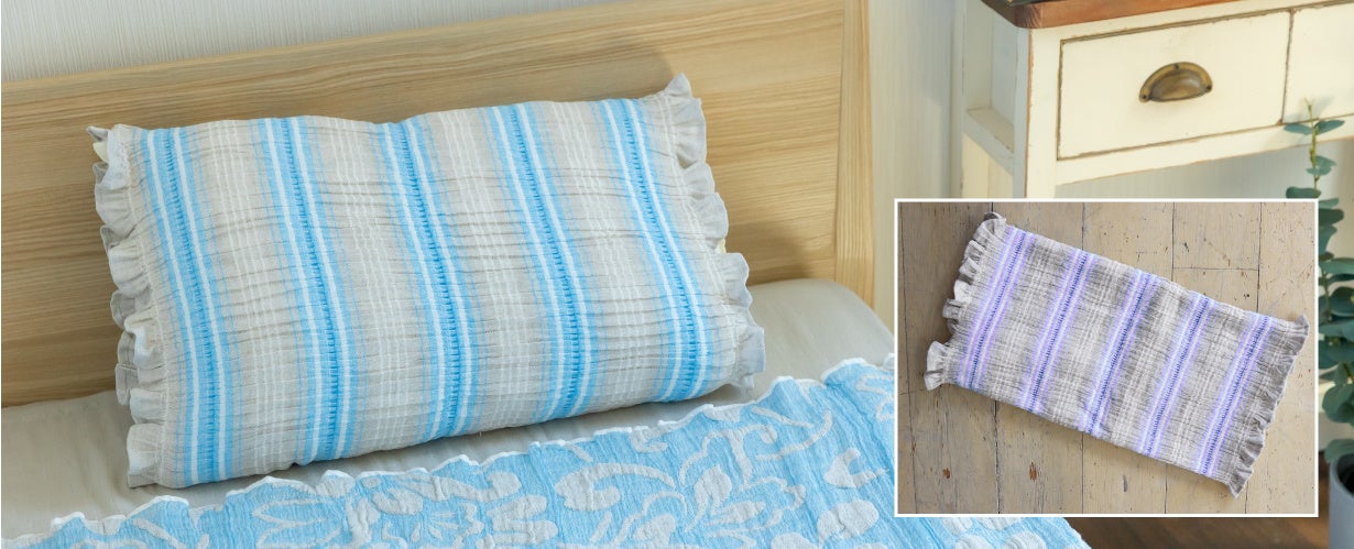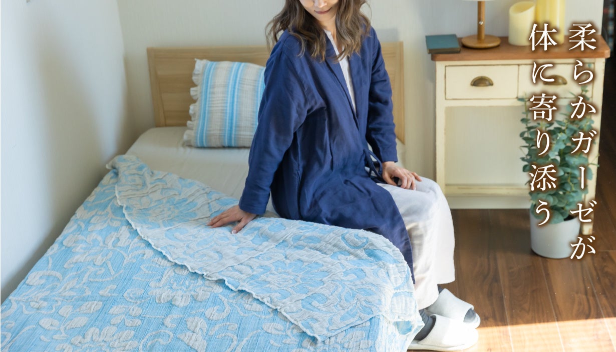 麻(リネン)を織り込んだ浮かし織りガーゼケット&ピローカバーを、