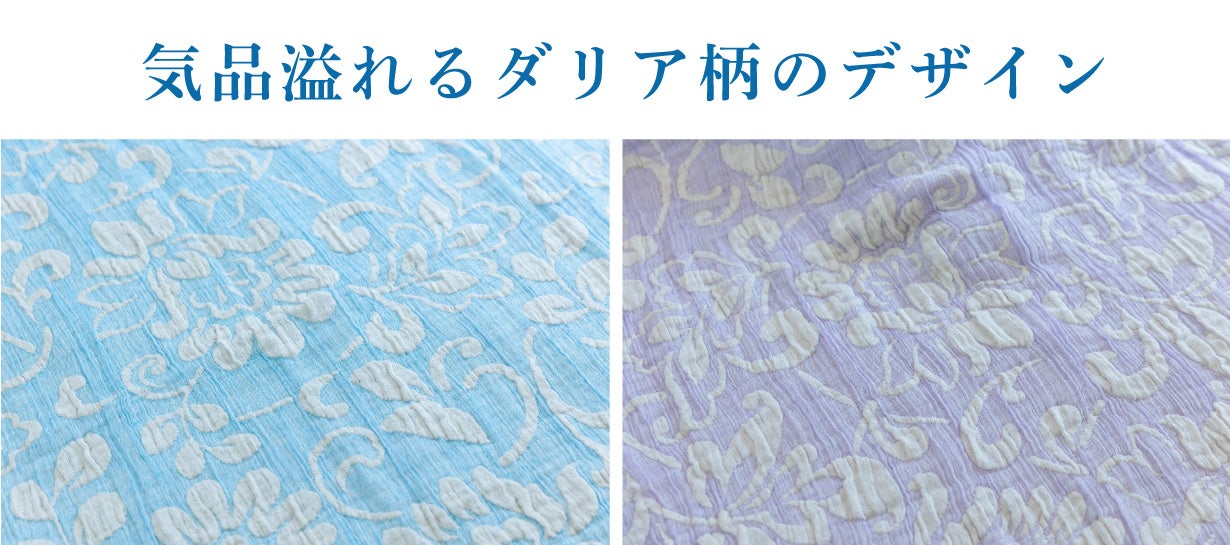 花柄の部分を浮かして織り上げ、立体感のある生地に仕上がっています。