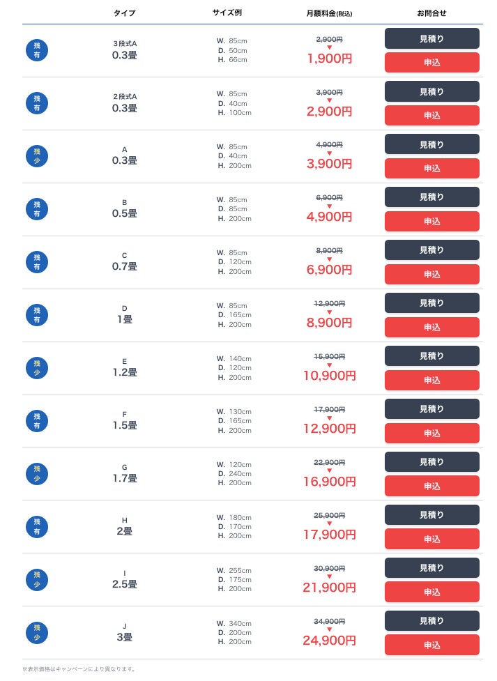 荷物以上に大きな部屋を借りてしまうことや、狭すぎて荷物が入らなかったなんていうトラブルを回避できます。