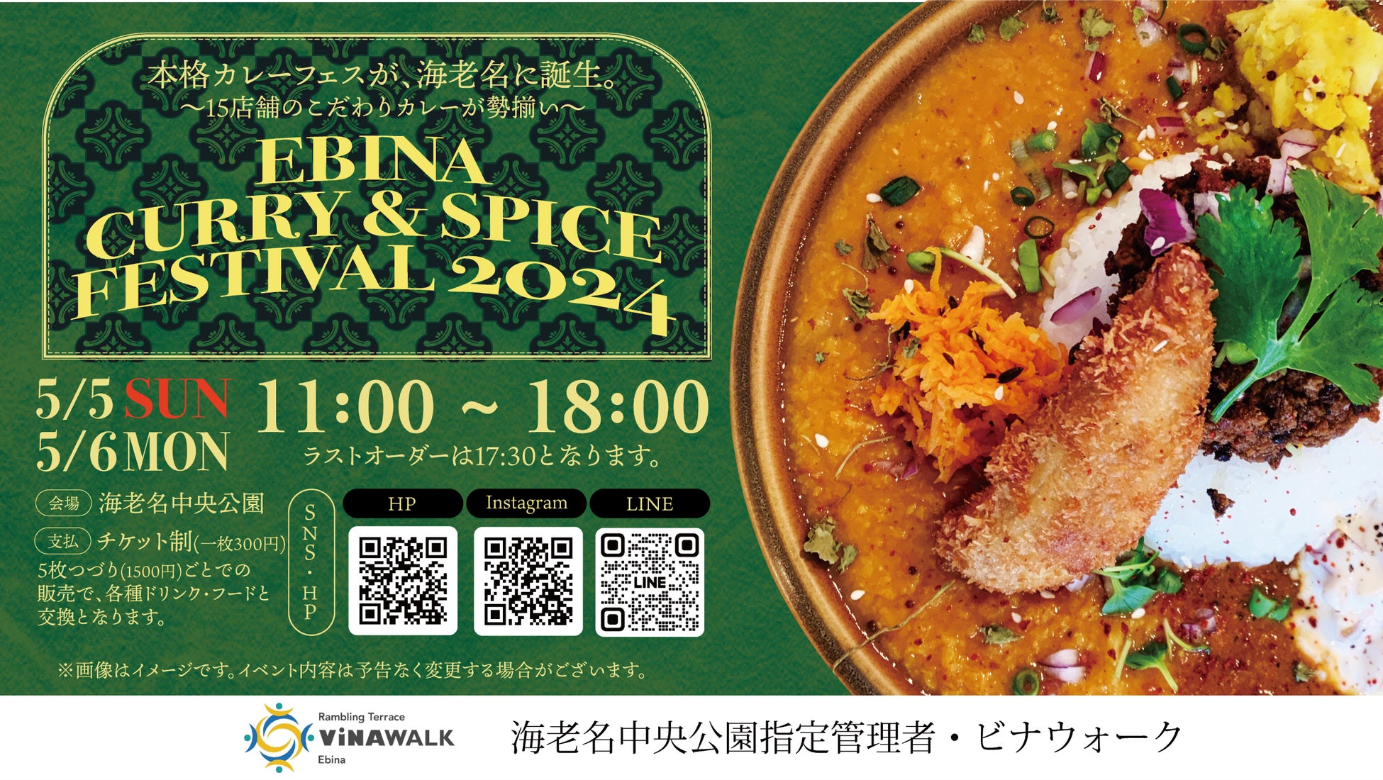 株式会社小田急SCディベロップメント(本社:東京都新宿区 取締役社長:細谷 和一郎)が運営する海老名駅直結商業施設「ビナウォーク」は、2024年5月5日(日)・6日(月・祝)の2日間、ビナウォークに隣接する海老名中央公園にて、「EBINA CURRY & SPICE FESTIVAL 2024」を初開催します。