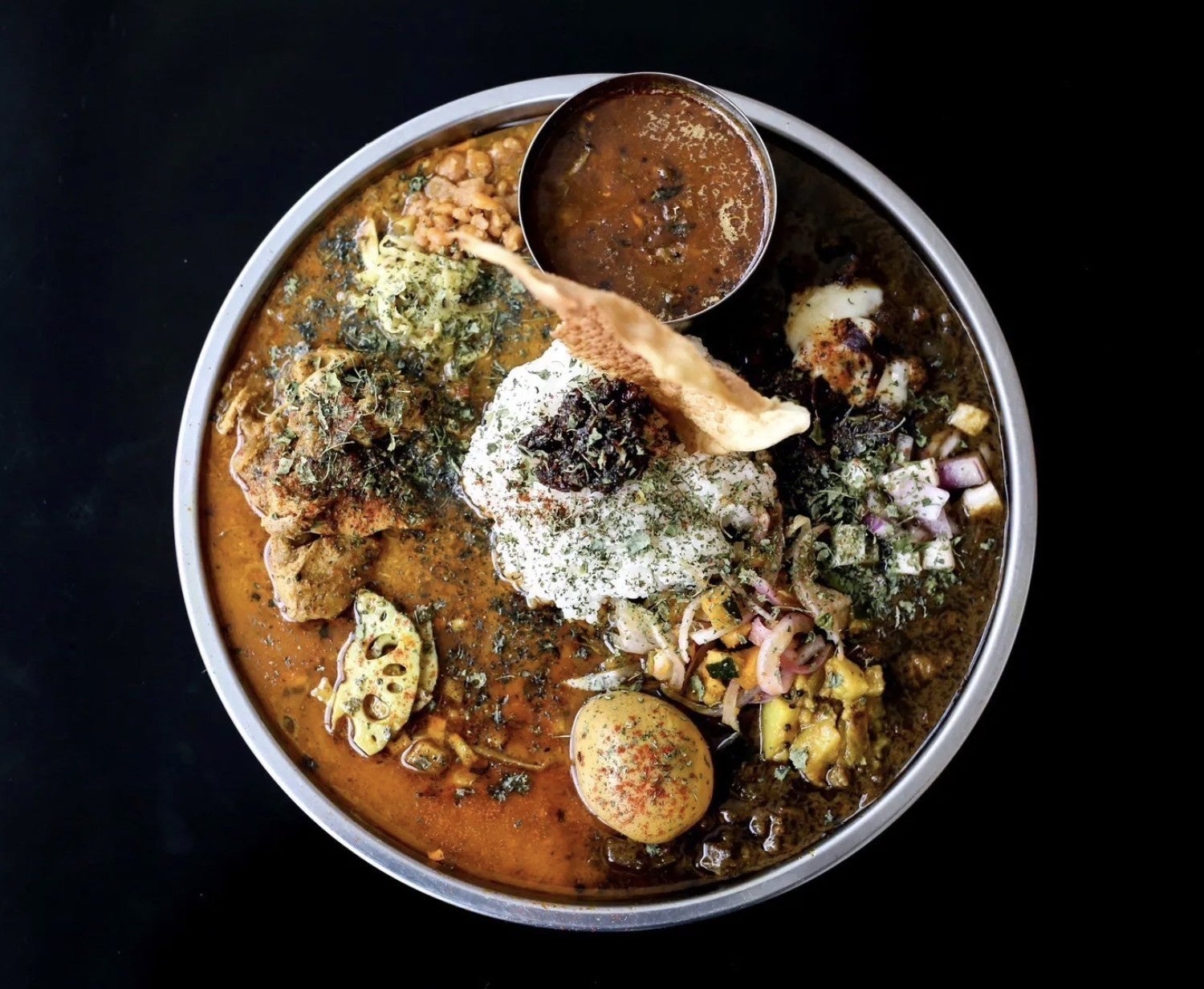 黒胡麻味噌キーマと白味噌ココナッツカレーの2種盛り |