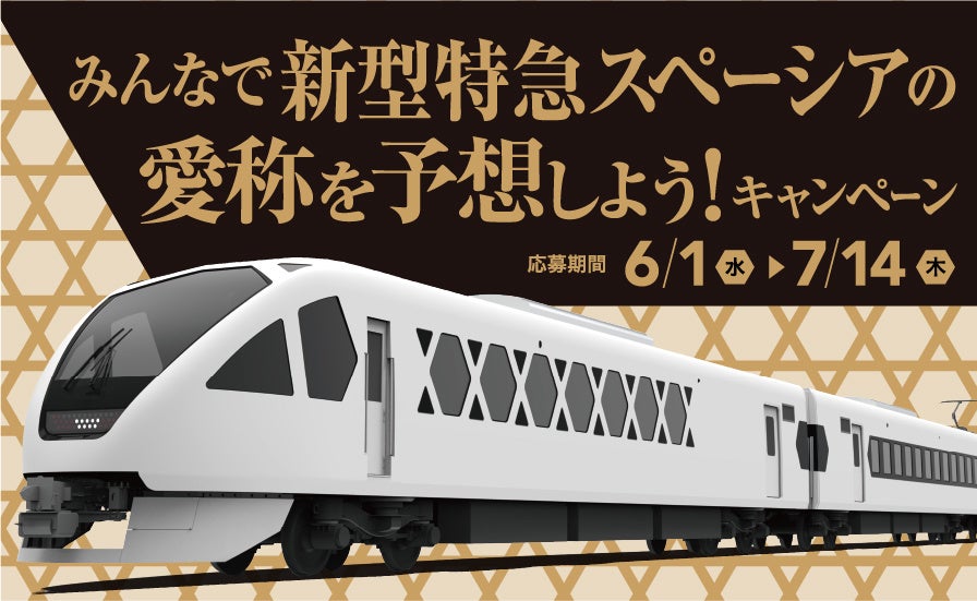 東武鉄道(本社:東京都墨田区)では、2023年に導入する特急スペーシアの新型車両について、沿線内外の皆様に親しみを持っていただくことを目的に、2022年6月1日(水)から7月14日(木)まで、「みんなで新型特急スペーシアの愛称を予想しよう!キャンペーン」を実施します。