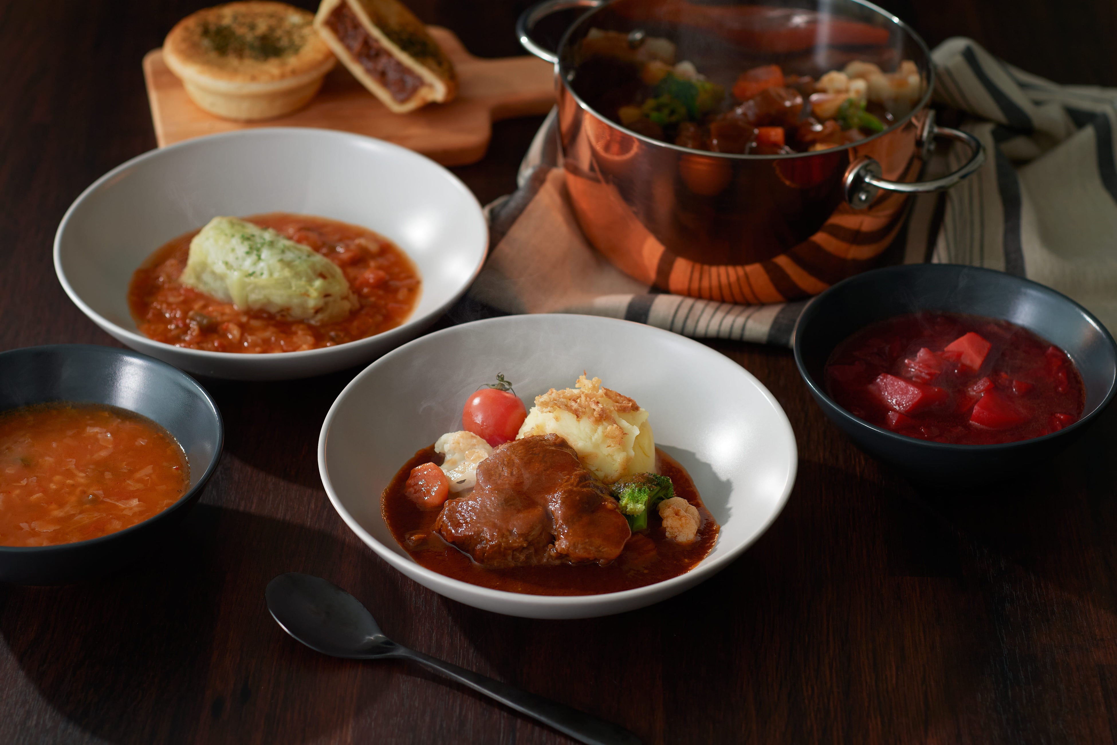 また、心も体もあたたまるシチュー&スープ フェアで登場するゴロッと大きな牛すね肉を赤ワインで煮込んだビーフシチューは、ボリューム満点。プラントベースのロールキャベツやミートパイ、ボルシチなどサステナブルなメニューも揃っています。寒い日に食べたくなる、あったかメニューをぜひお楽しみください。