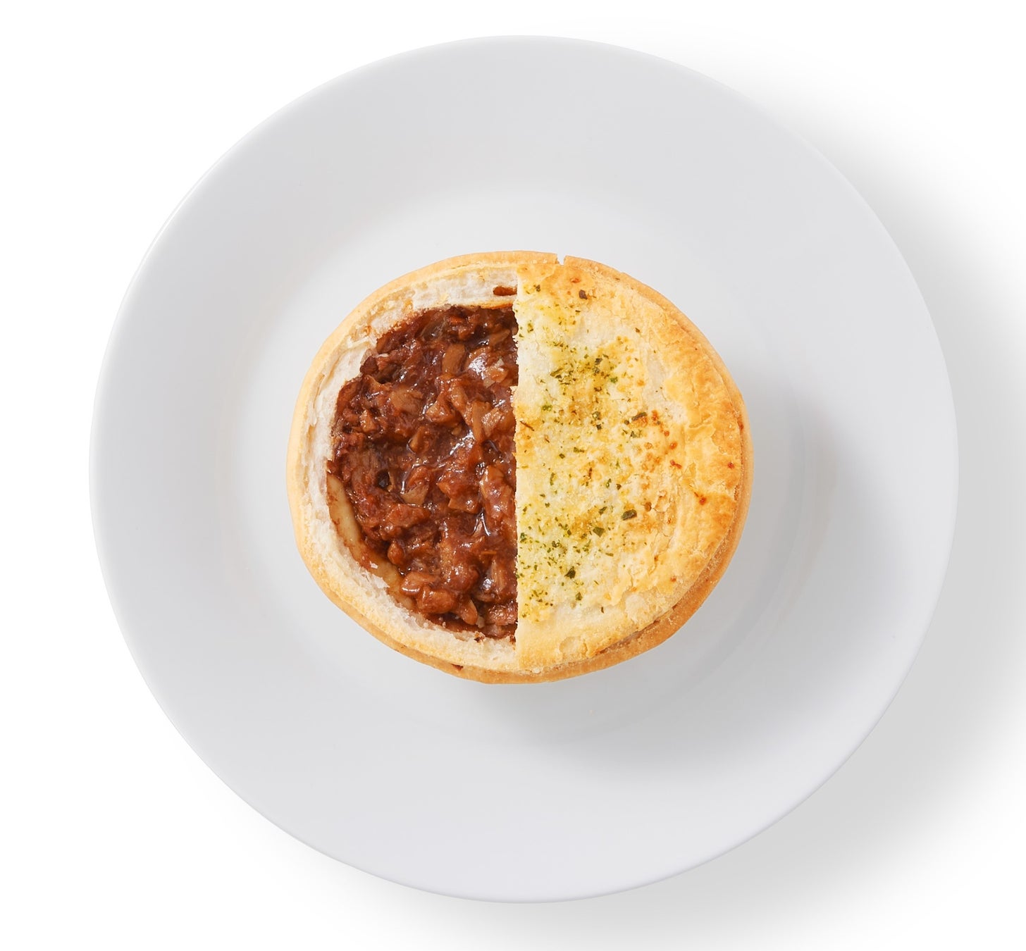 プラントベースひき肉のシチューがたっぷり入った、贅沢なパイ。