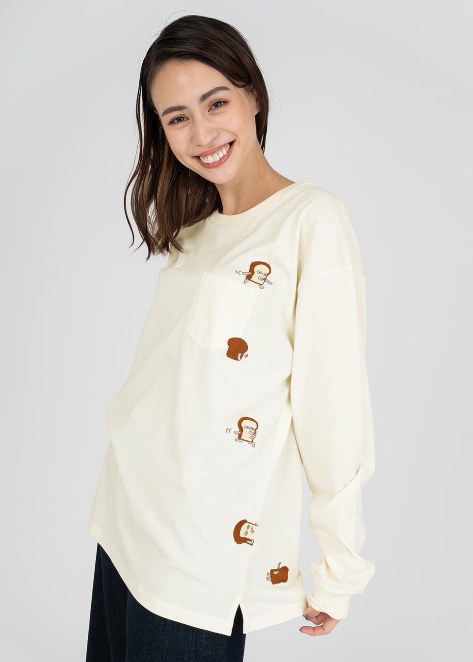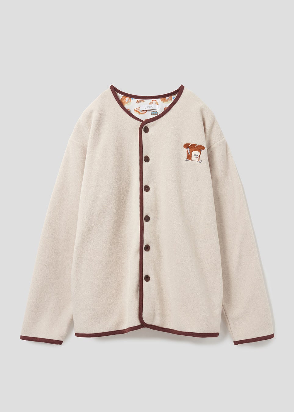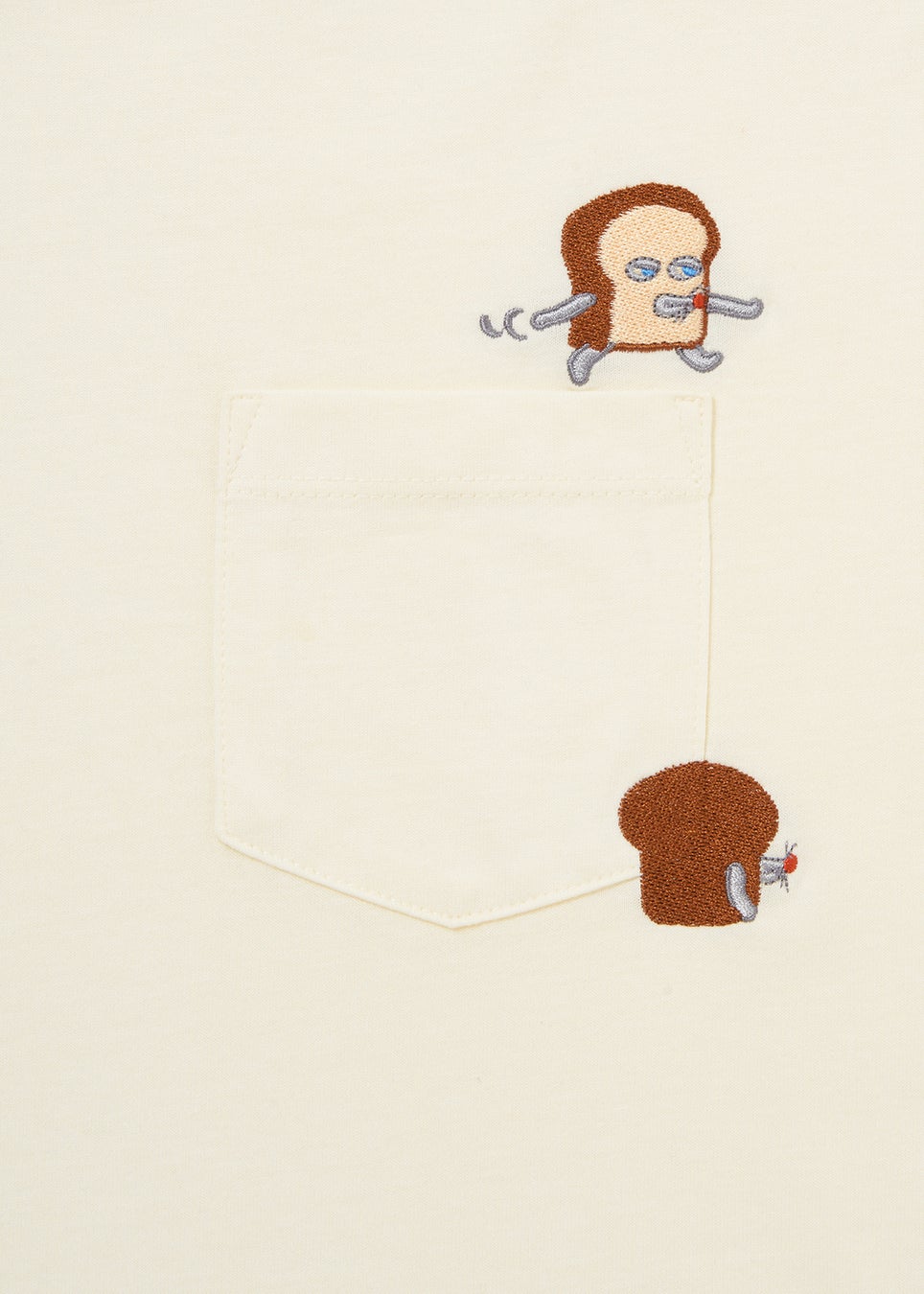並んだ食パンをパターンにしたデザイン。左裾には隠れたパンどろぼうが刺繍されています。