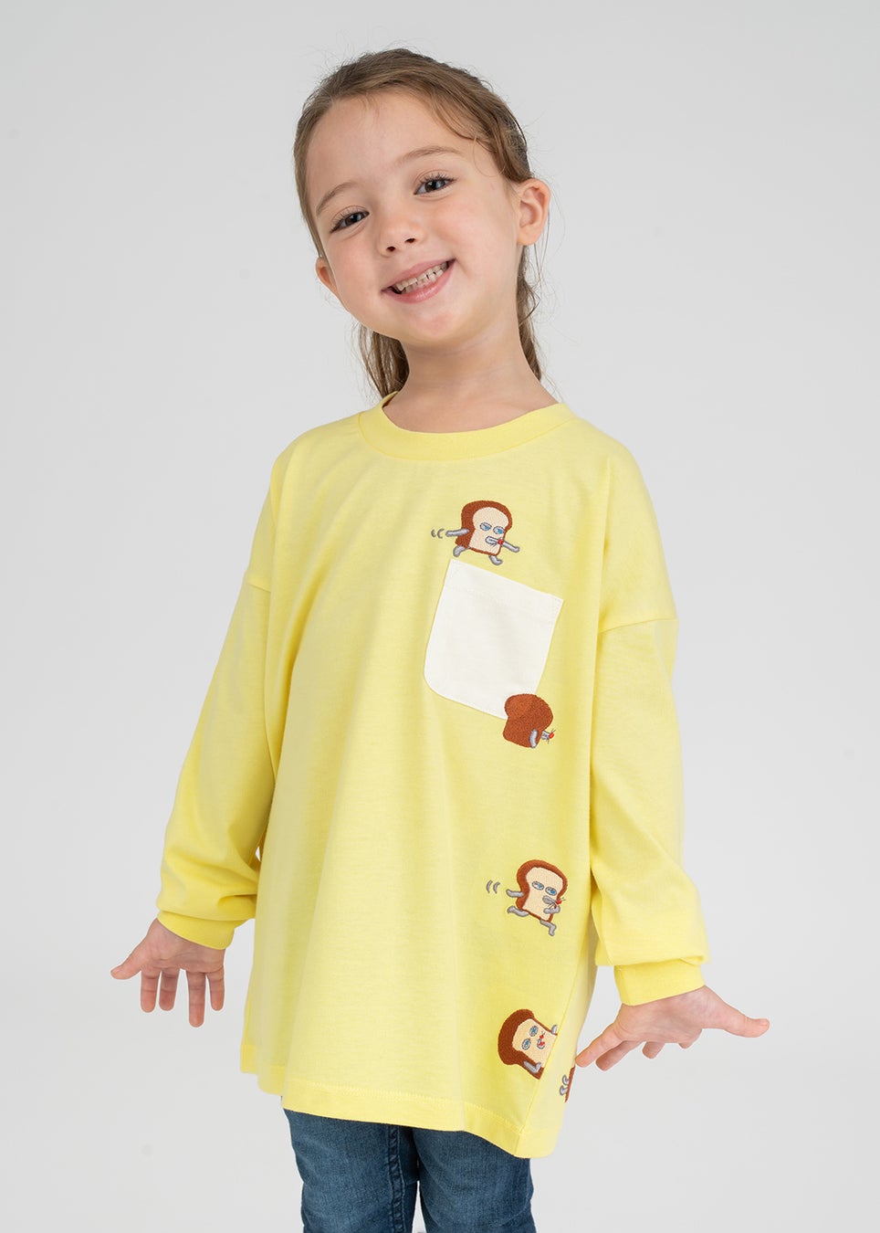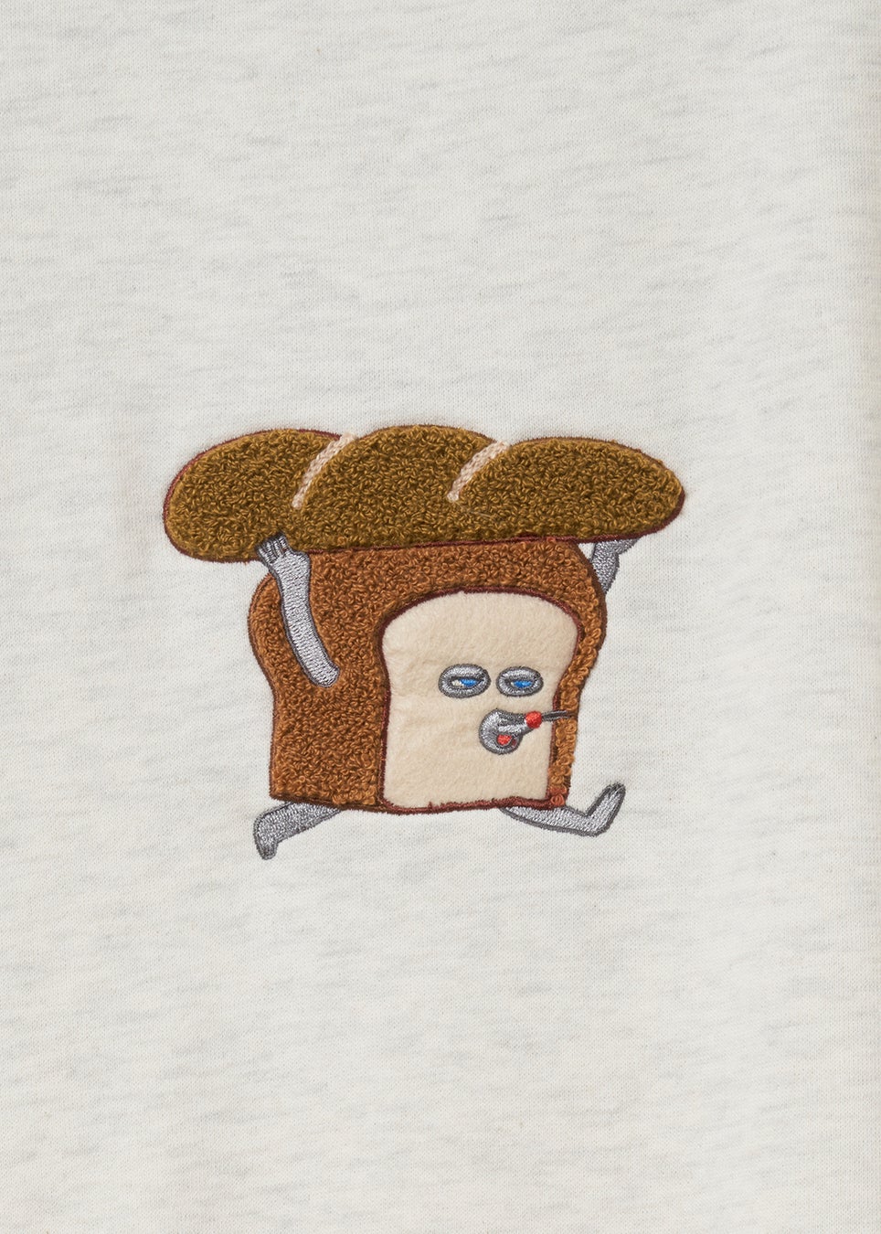 シリーズ「パンどろぼう」より、カバーイラストを使用したデザイン。サガラ刺繍とフェルトでパンのフワフワ感を表現しています。