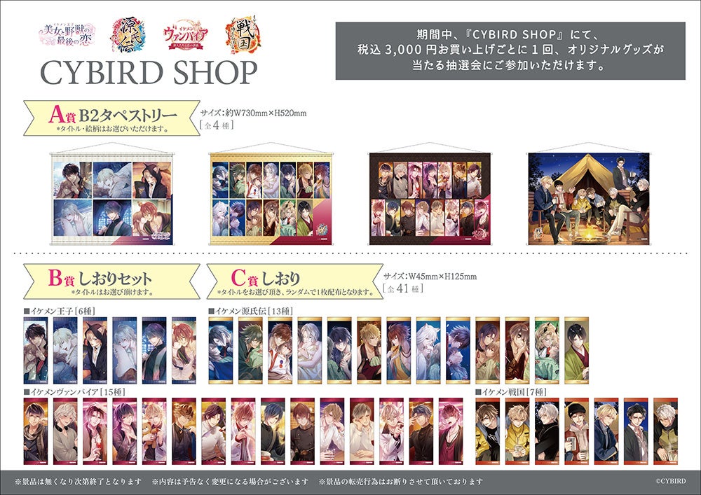 株式会社コンテンツシード(本社:東京都品川区、代表取締役:大塚 則和)は、株式会社サイバード(本社:東京都渋谷区、代表取締役社長 兼 CEO 本島 匡)が手掛ける、全世界でのシリーズ累計会員数3,500万人を誇る女性向け恋愛ゲーム「イケメンシリーズ」の人気4タイトルのグッズを扱う『CYBIRD SHOP』を新宿マルイアネックス7Fにて2022年12月21日(水)より開催いたします。